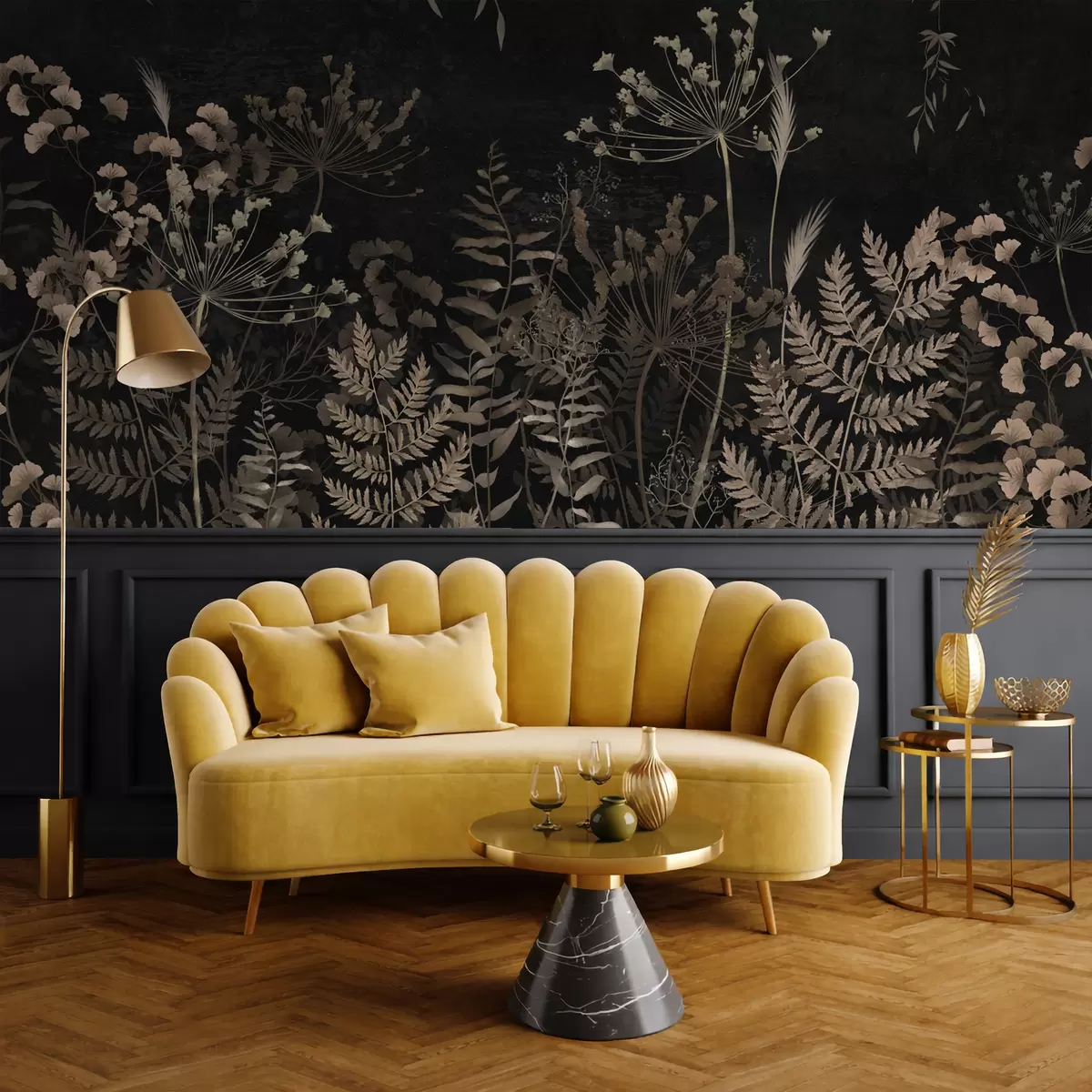 Murais de parede Padrão botânico escuro com flores e folhas Nr. w05092