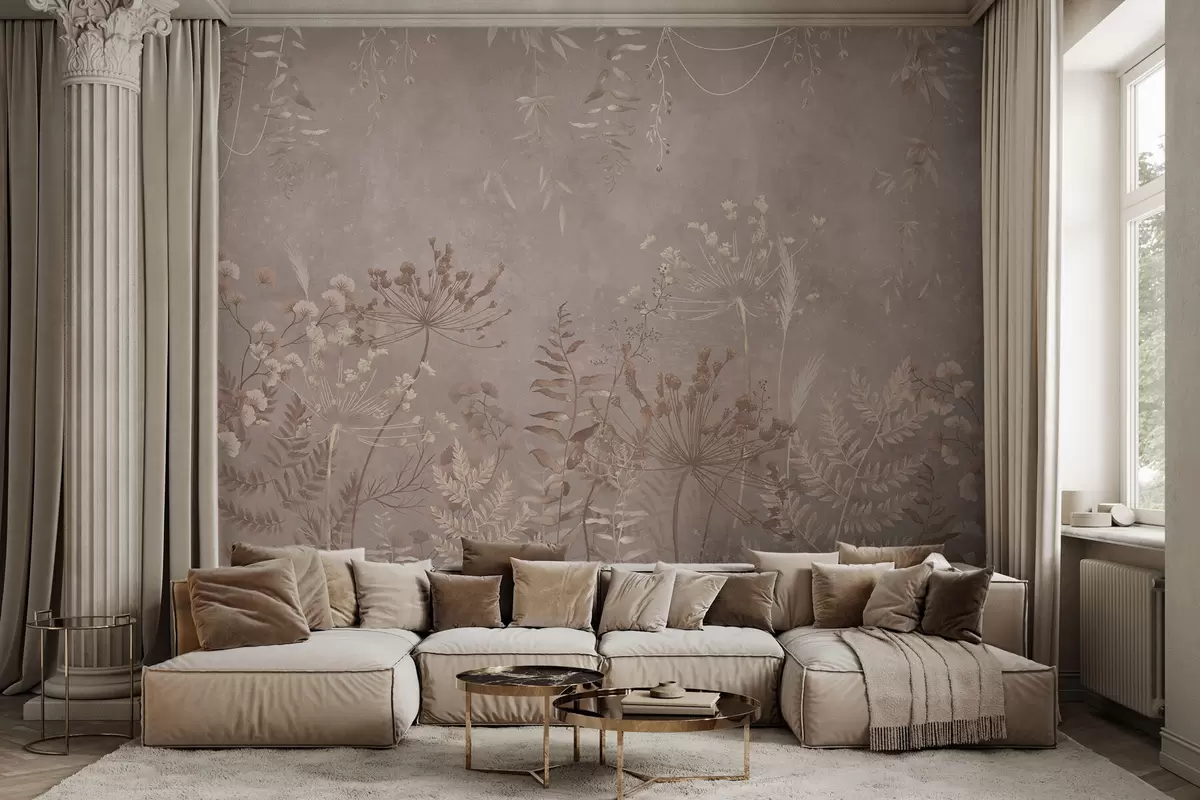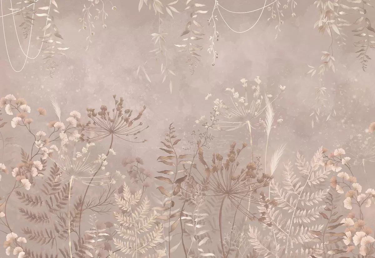 Murais de parede Padrão botânico bege suave com flores silvestres Nr. w05092v2