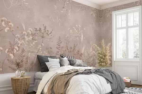 Murais de parede Padrão botânico bege suave com flores silvestres Nr. w05092v2