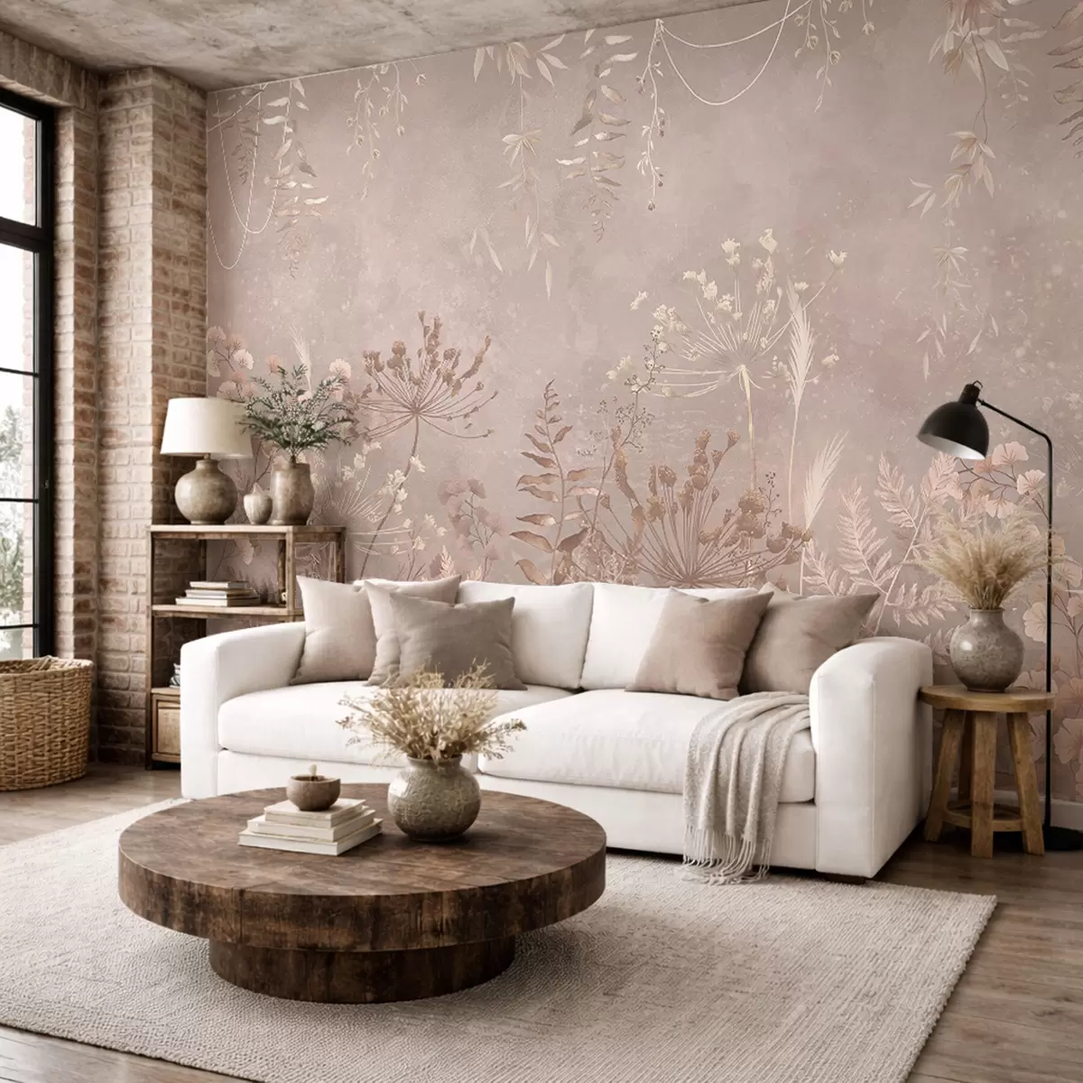 Murais de parede Padrão botânico bege suave com flores silvestres Nr. w05092v2