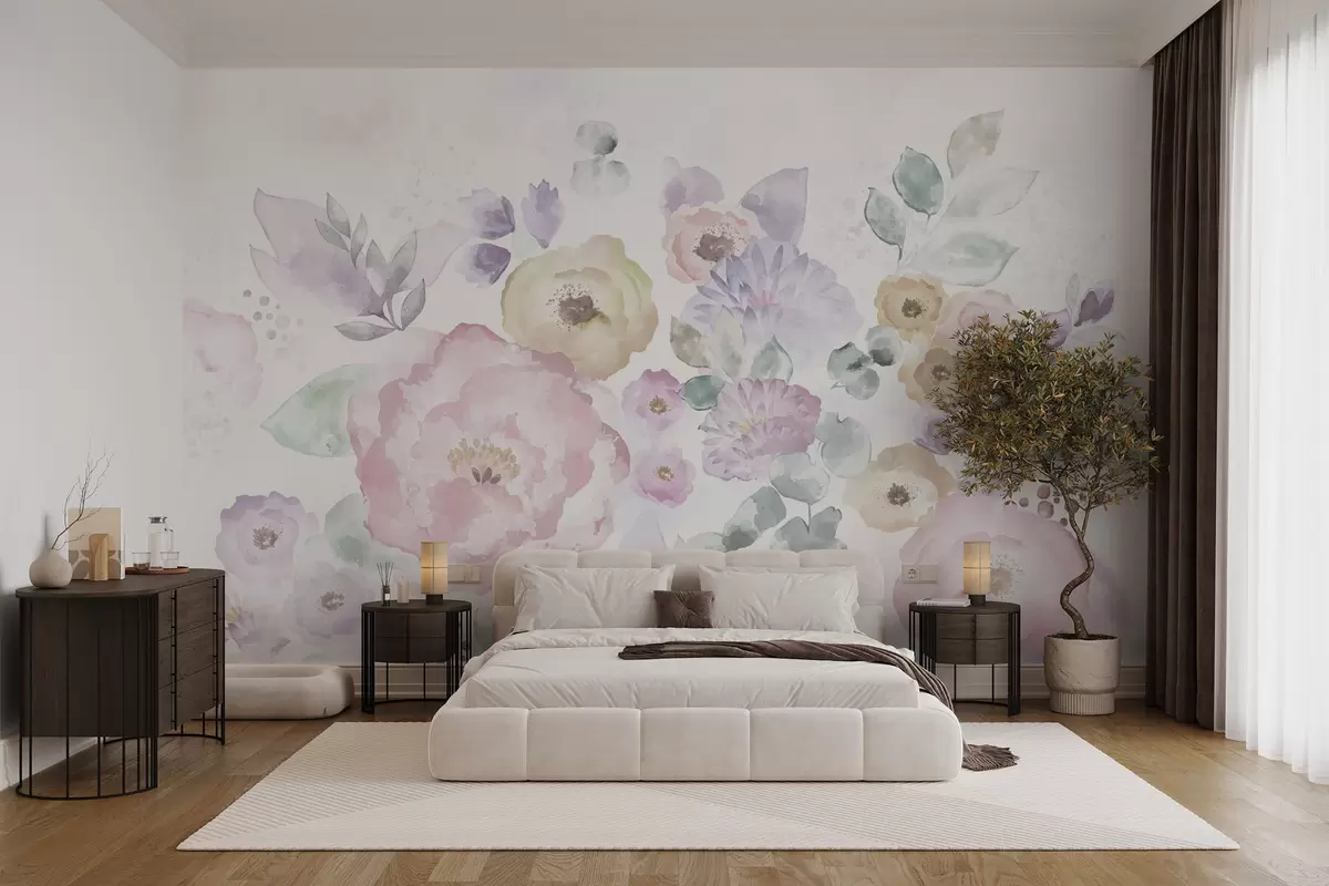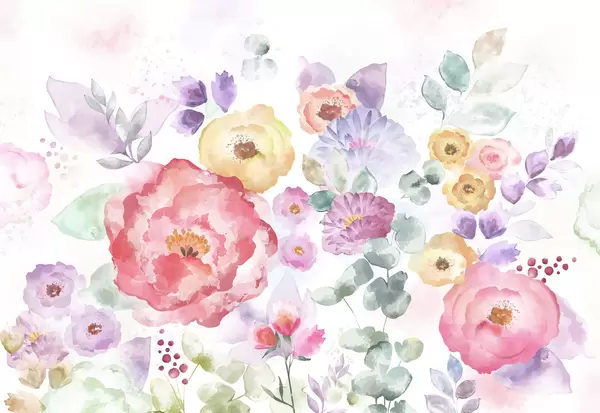 Murais de parede Composição em aquarela suave com flores e folhas Nr. w05093