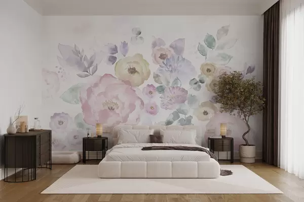 Murais de parede Composição em aquarela suave com flores e folhas Nr. w05093