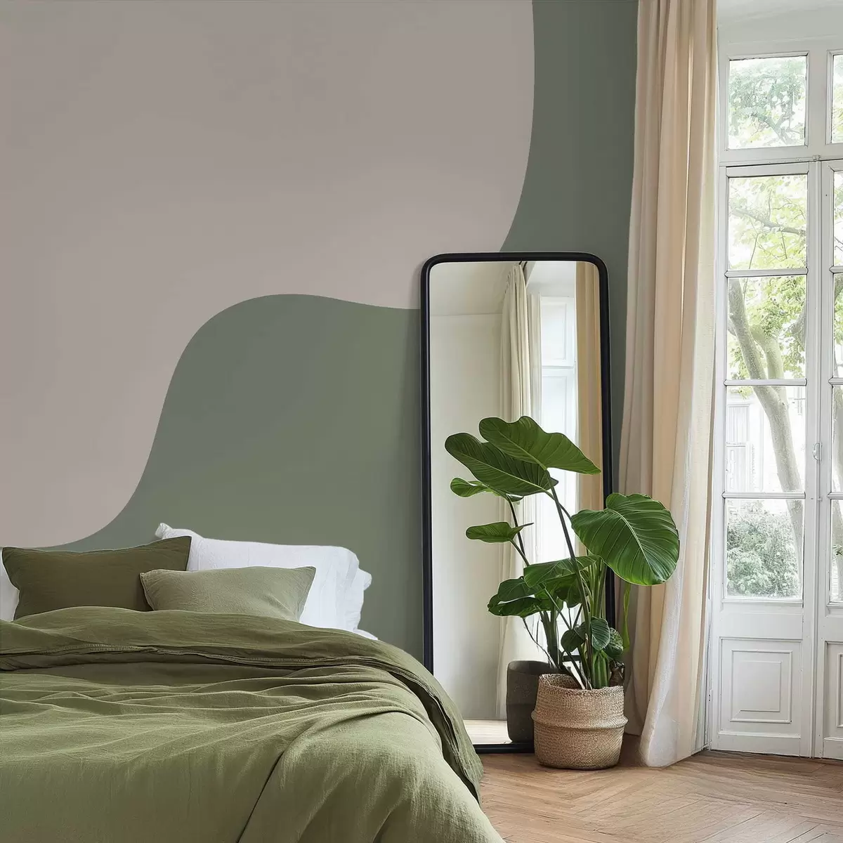Murais de parede Formas abstratas suaves em tons de bege claro e verde Nr. w05097