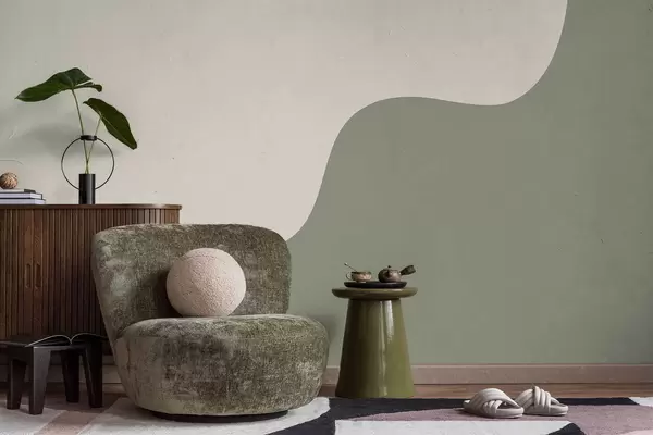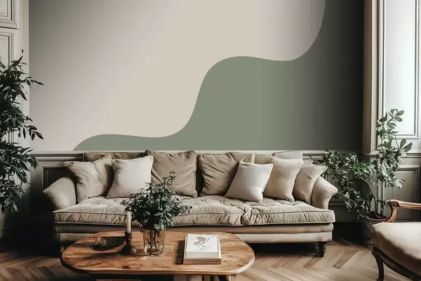 Murais de parede Formas abstratas suaves em tons de bege claro e verde Nr. w05097
