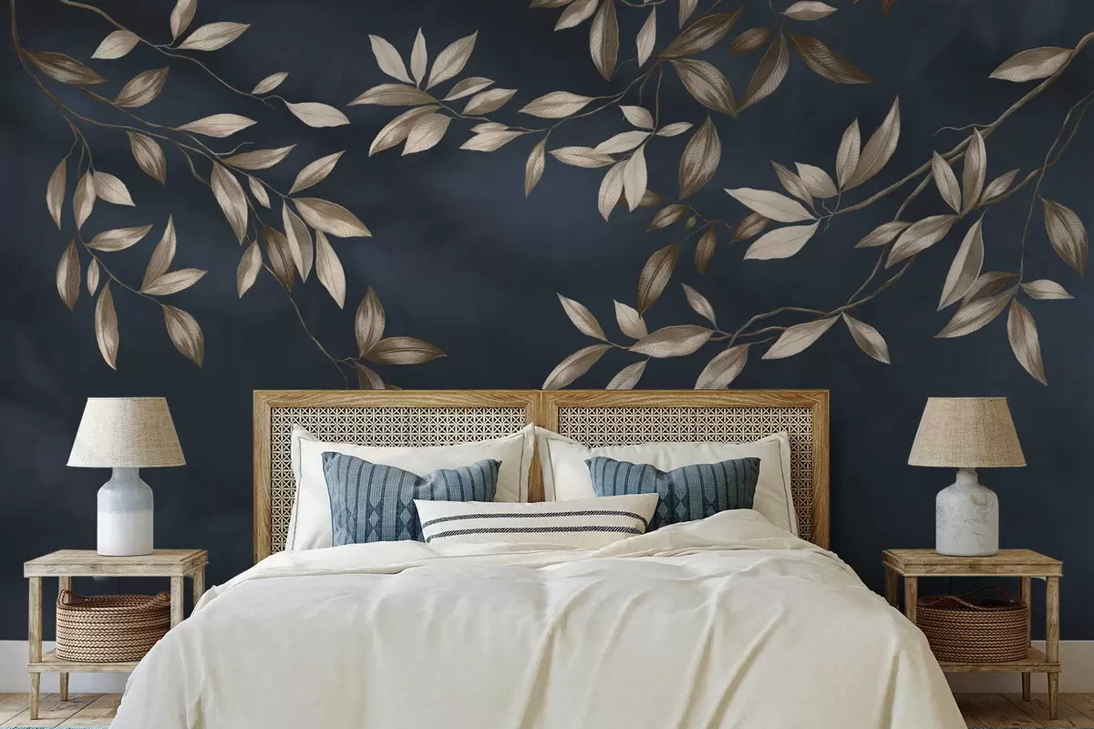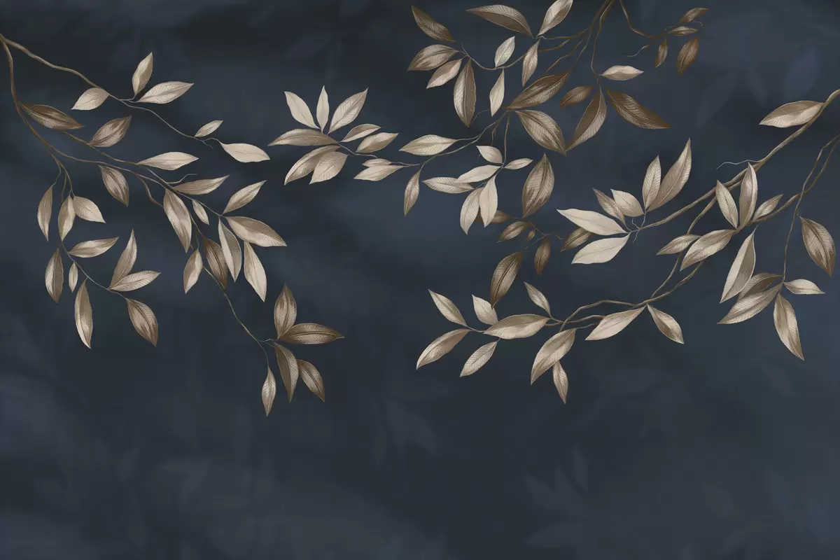 Murais de parede Galhos folhosos decorativos sobre um fundo azul profundo Nr. w05113v1