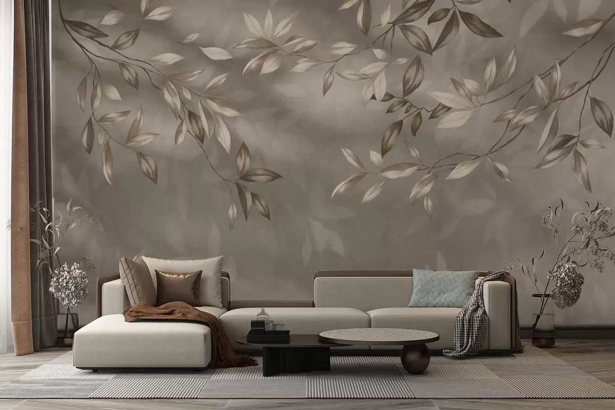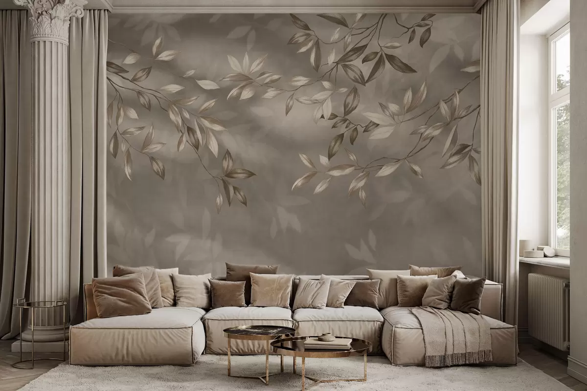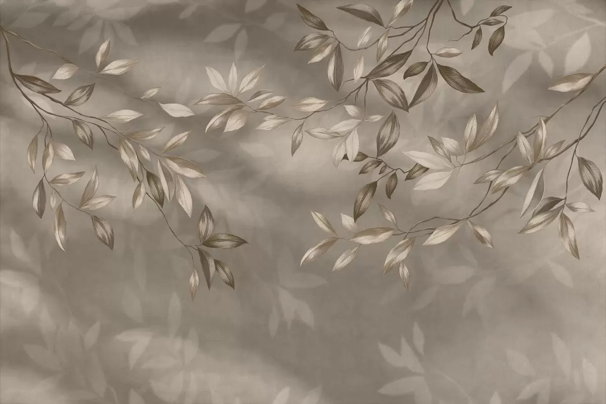 Murais de parede Ramos delicados com folhas em tons bege sobre um fundo claro Nr. w05113v2