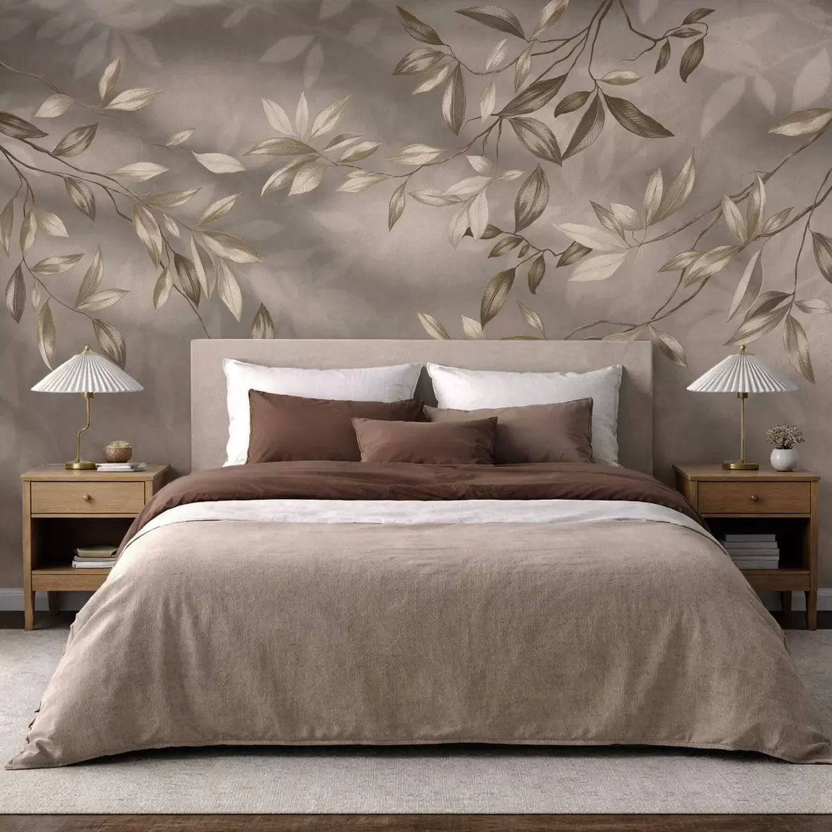 Murais de parede Ramos delicados com folhas em tons bege sobre um fundo claro Nr. w05113v2