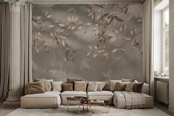 Murais de parede Ramos delicados com folhas em tons bege sobre um fundo claro Nr. w05113v2