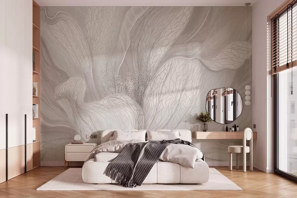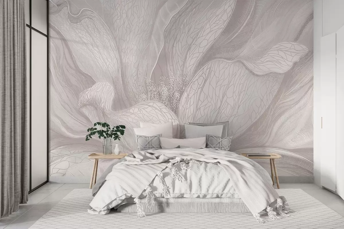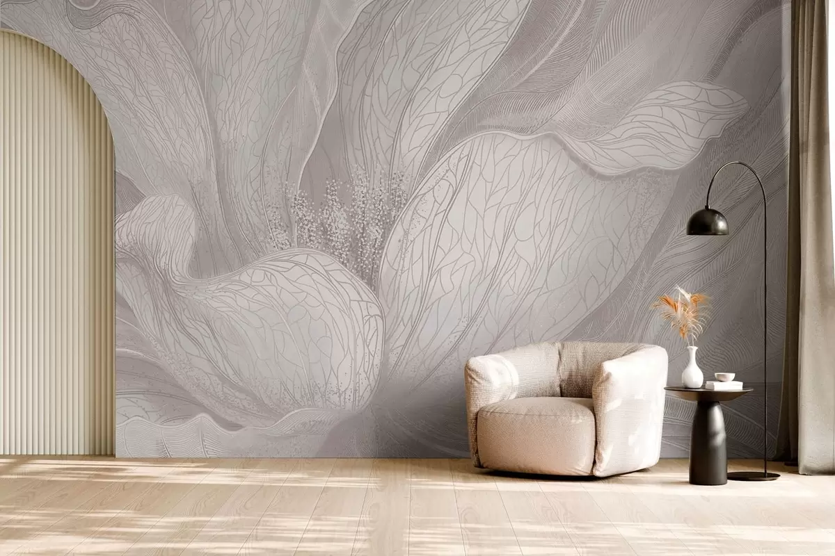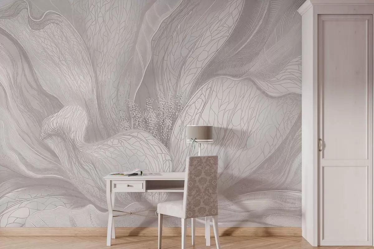 Murais de parede Flor abstrata leve com linhas fluidas Nr. w05119v3