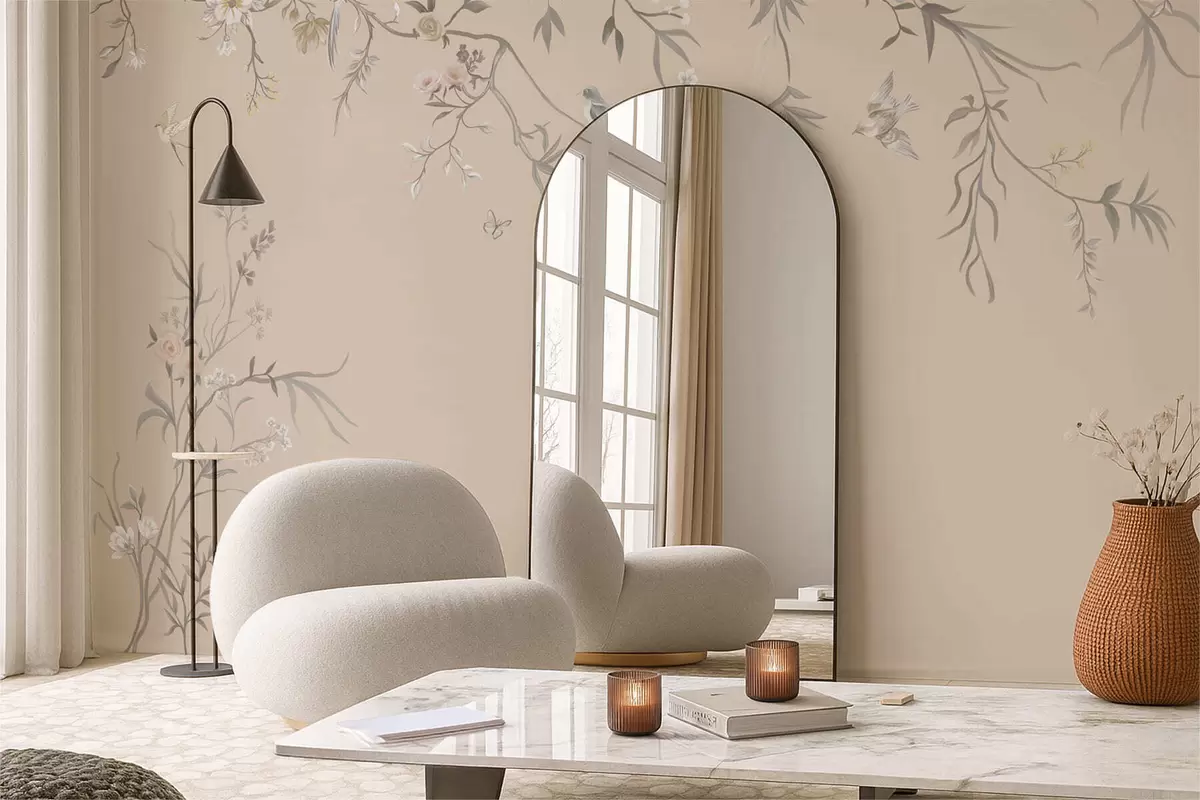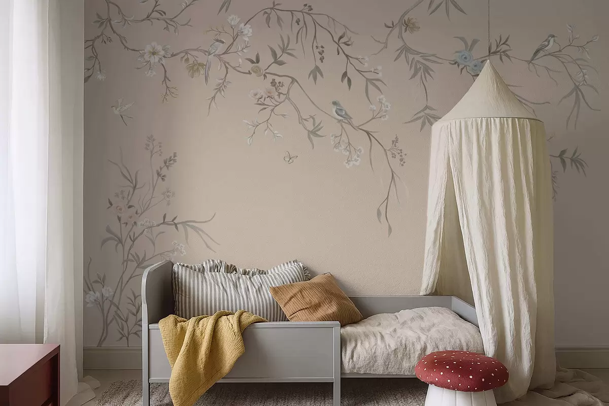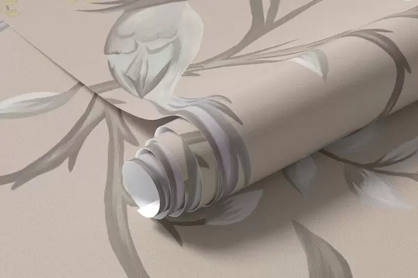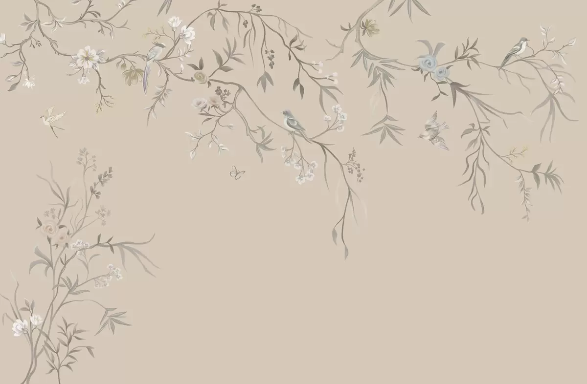 Murais de parede Ramos florais com pássaros sobre fundo bege quente Nr. w05127v1
