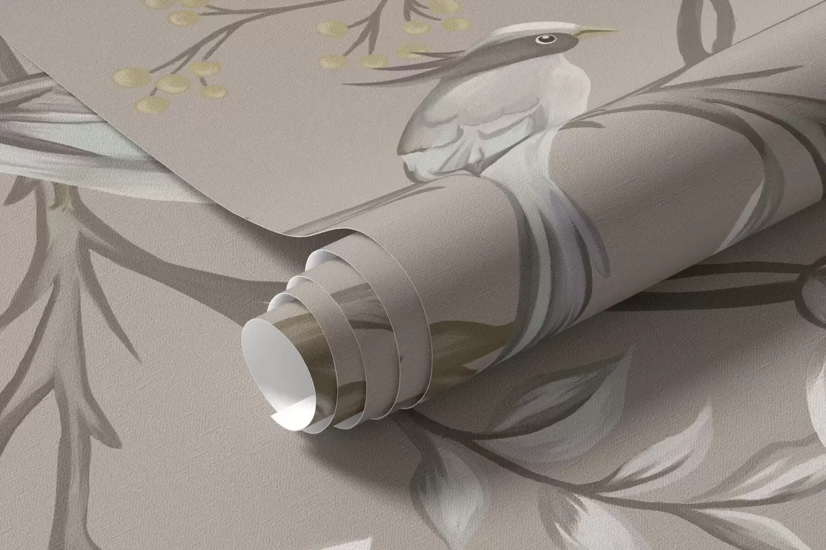 Murais de parede Ornamento floral com pássaros em fundo neutro Nr. w05127v3