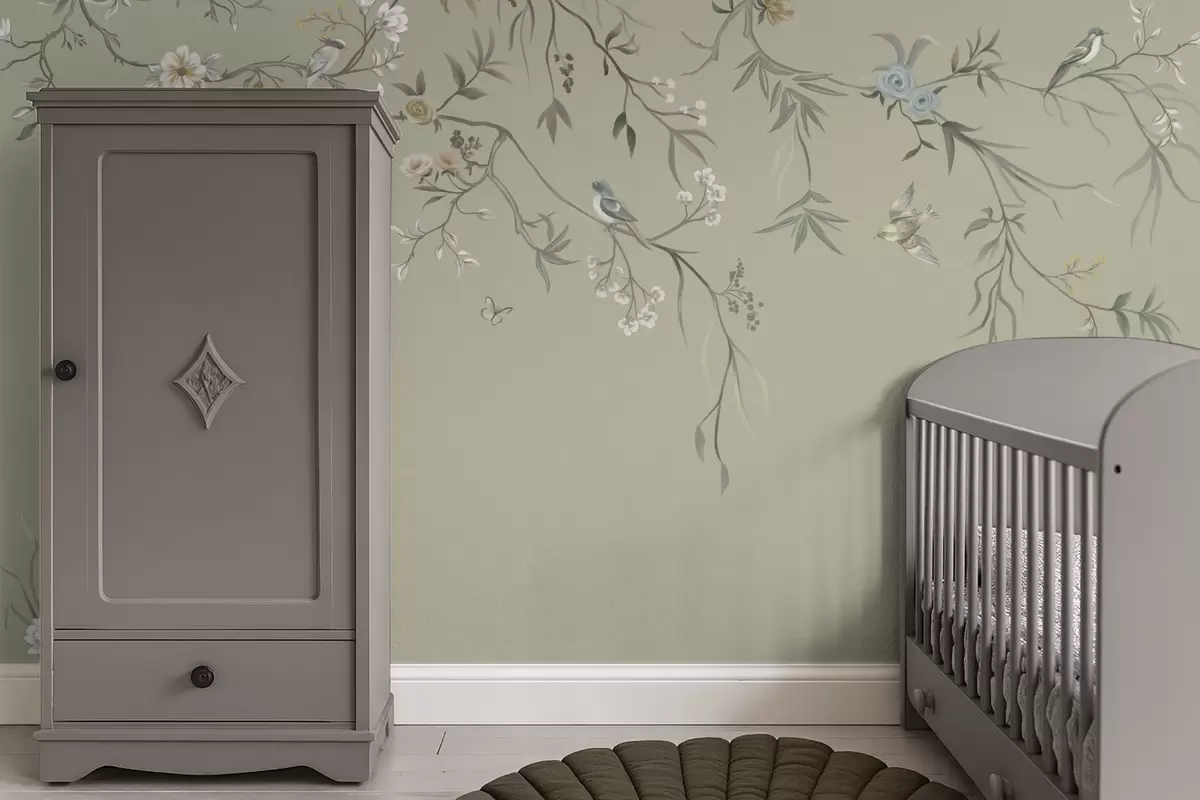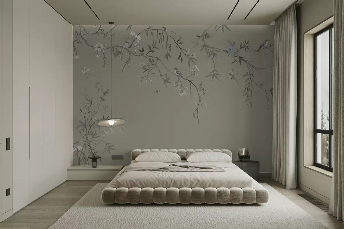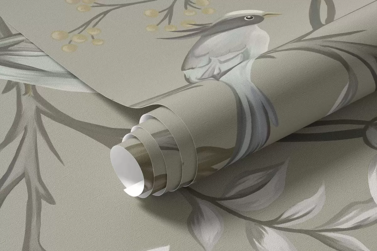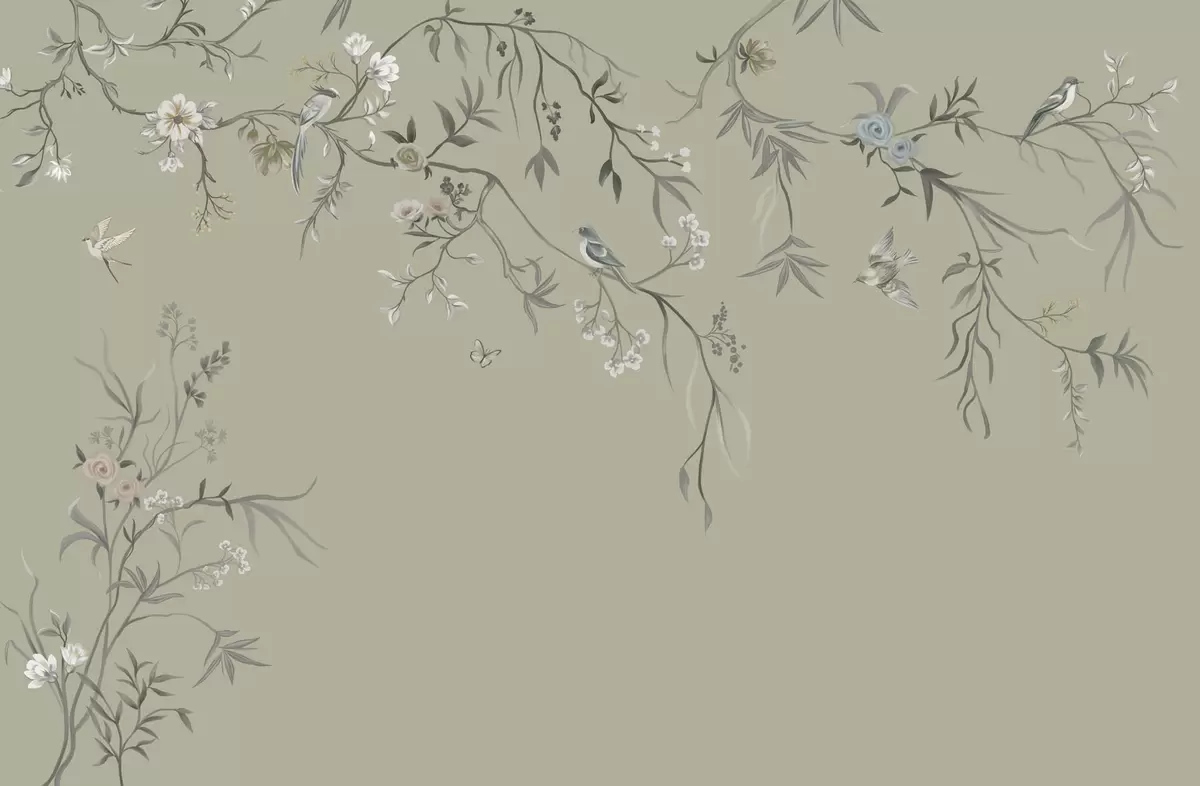 Murais de parede Padrão floral com pássaros sobre fundo frio Nr. w05127v6