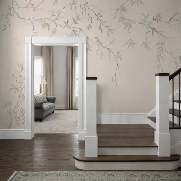 Murais de parede Galhos florais com pássaros em um fundo claro Nr. w05127v7