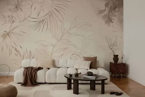 Murais de parede Plantas lineares sobre fundo bege texturizado Nr. w05128