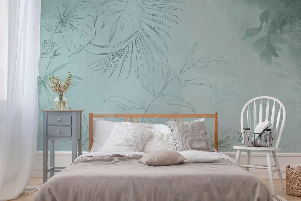 Murais de parede Plantas lineares sobre fundo verde suave Nr. w05128v1