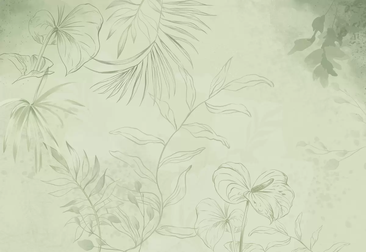 Murais de parede Plantas lineares sobre fundo azul frio Nr. w05128v2