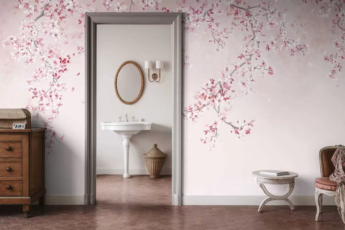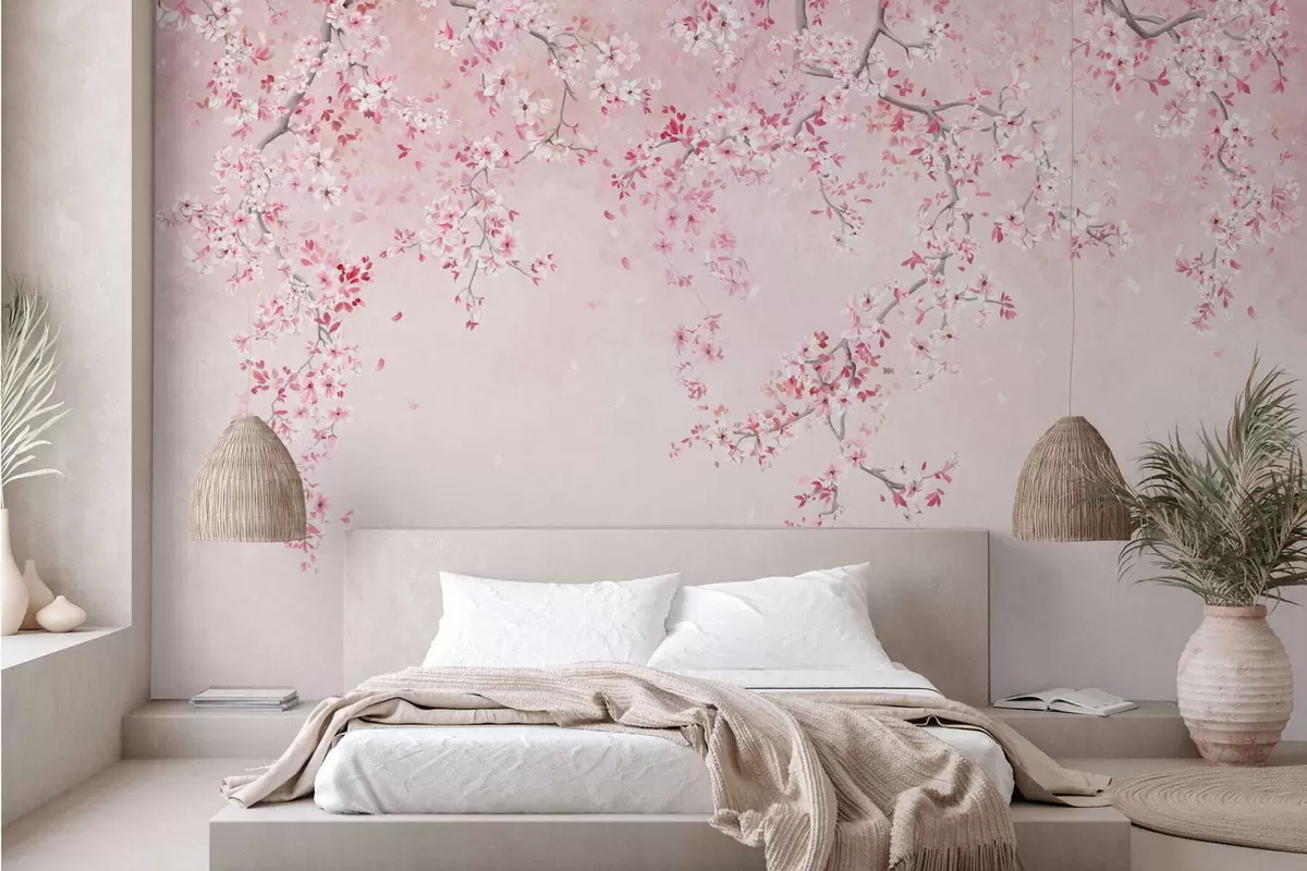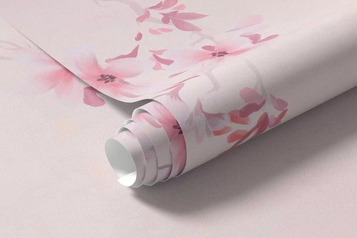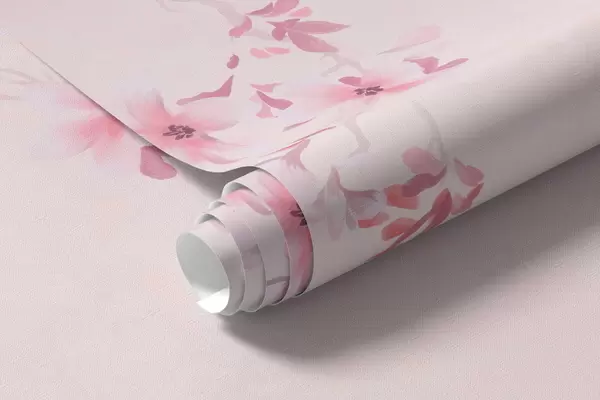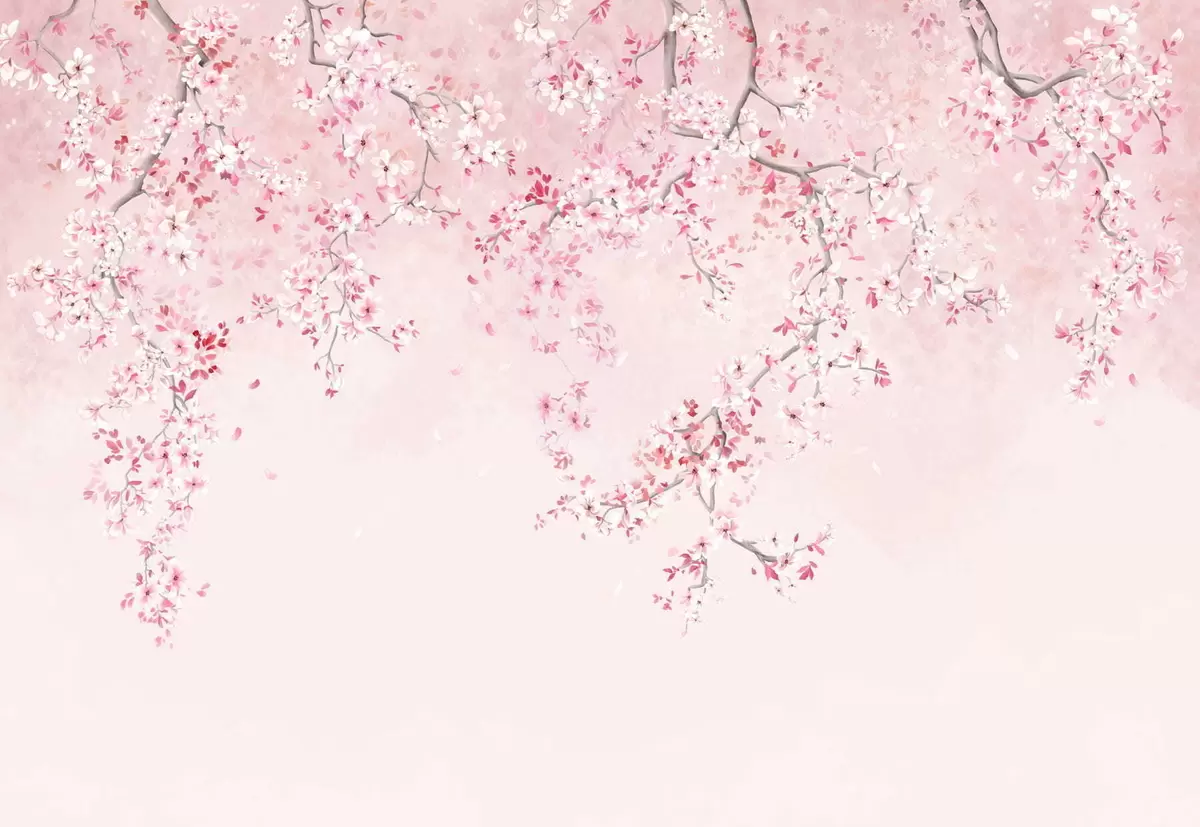 Murais de parede Galhos com flores cor-de-rosa sobre um fundo pastel suave Nr. w05129v1