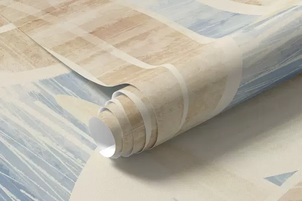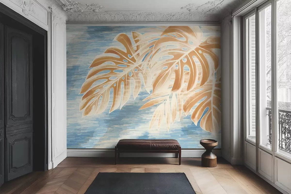 Murais de parede Folhas em tons claros de areia sobre fundo azul Nr. w05130v1