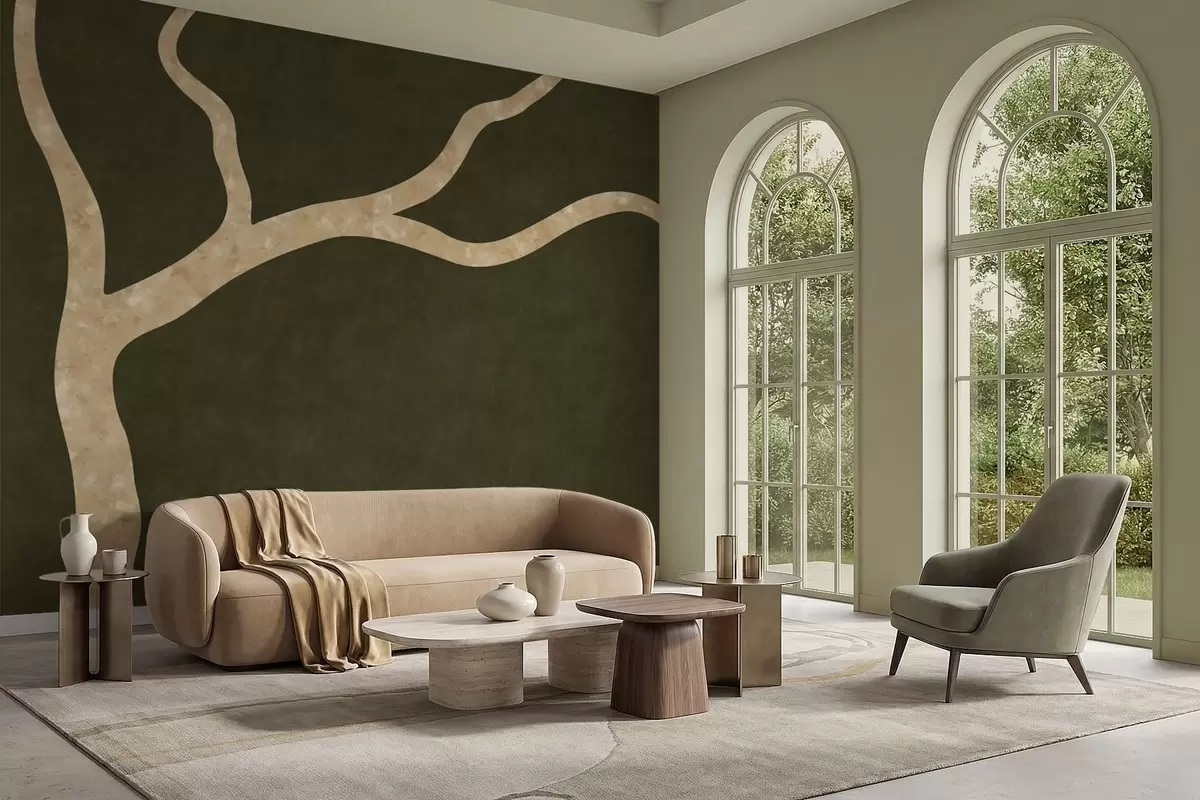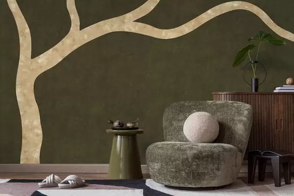 Murais de parede Ramo claro sobre fundo verde-oliva Nr. w05144v2