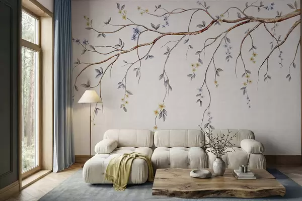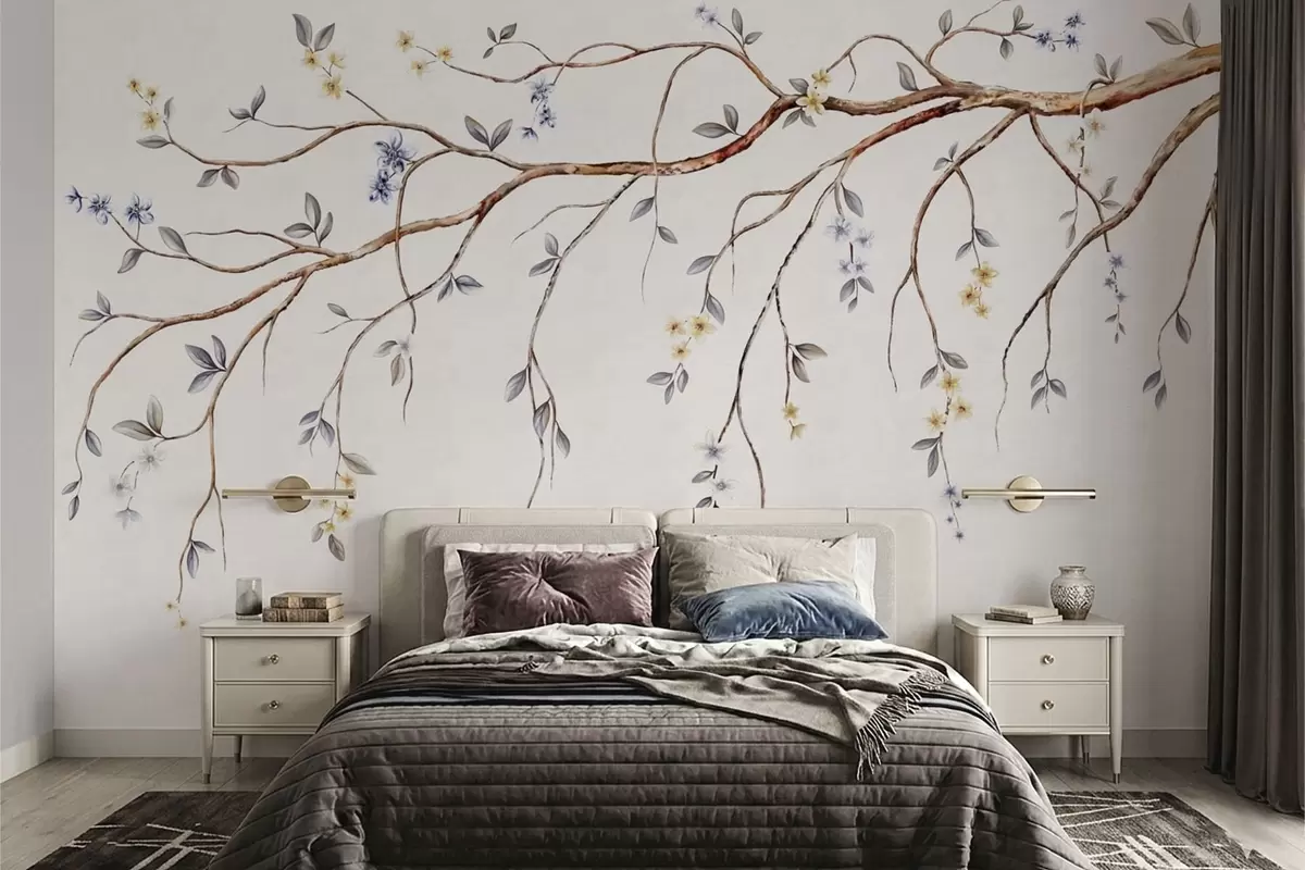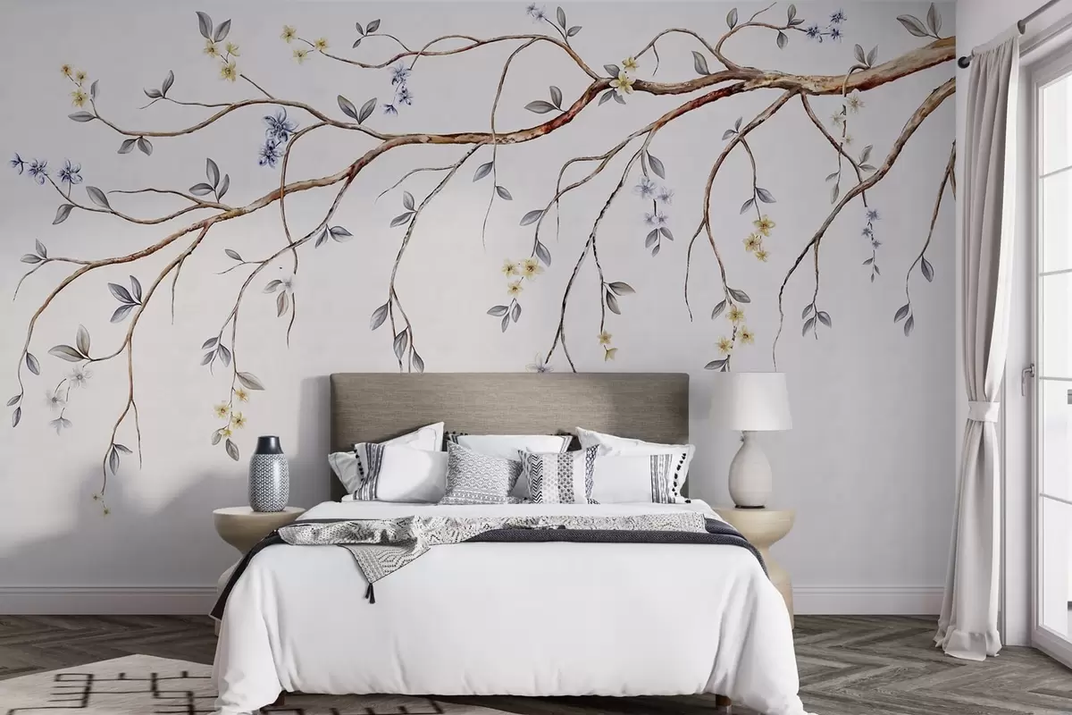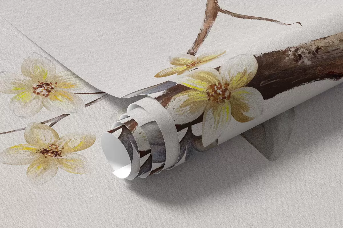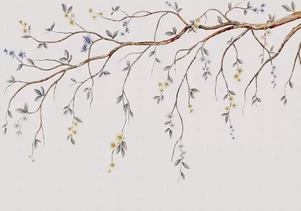 Murais de parede Galhos finos com pequenas flores em fundo claro Nr. w05145