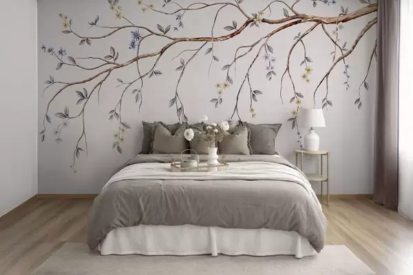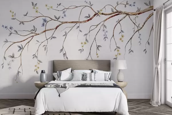 Murais de parede Galhos finos com pequenas flores em fundo claro Nr. w05145