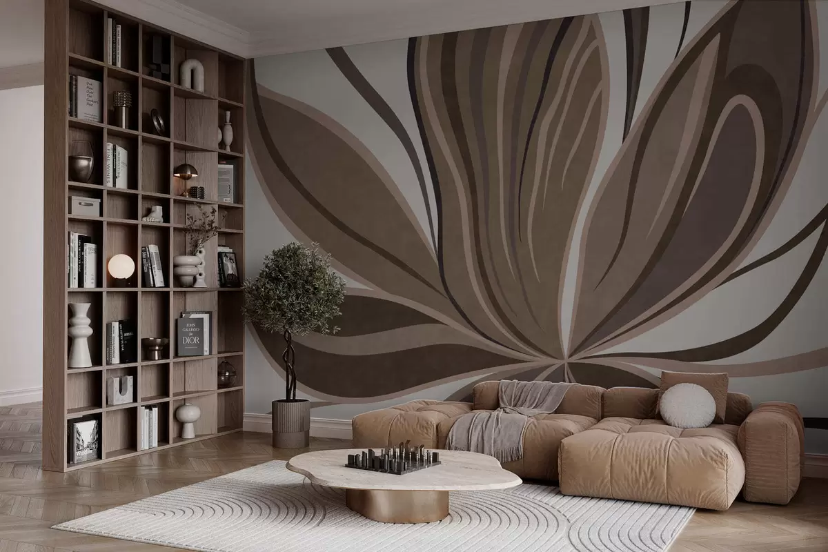 Murais de parede Flor estilizada com linhas fluidas em tons de marrom Nr. w05147