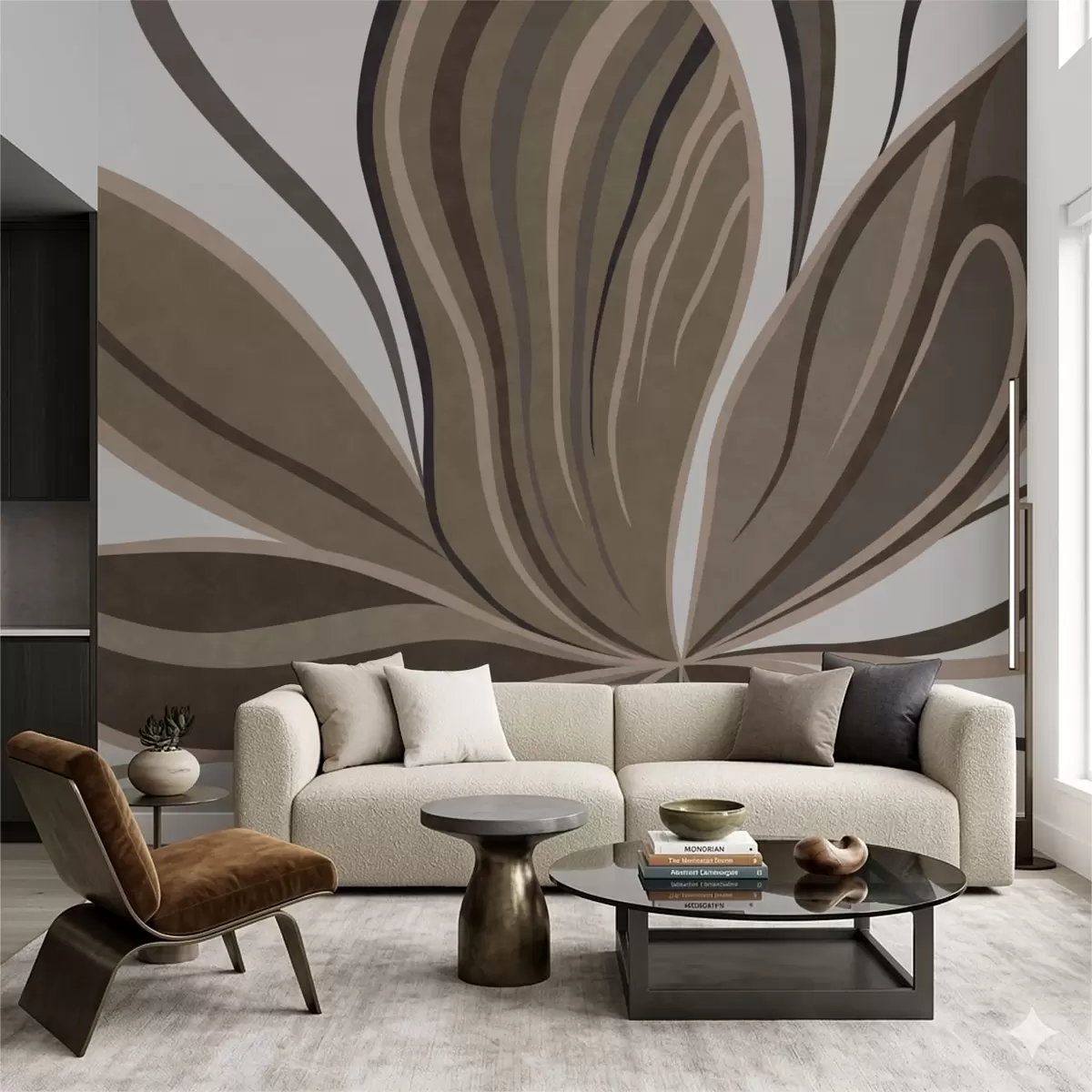 Murais de parede Flor estilizada com linhas fluidas em tons de marrom Nr. w05147