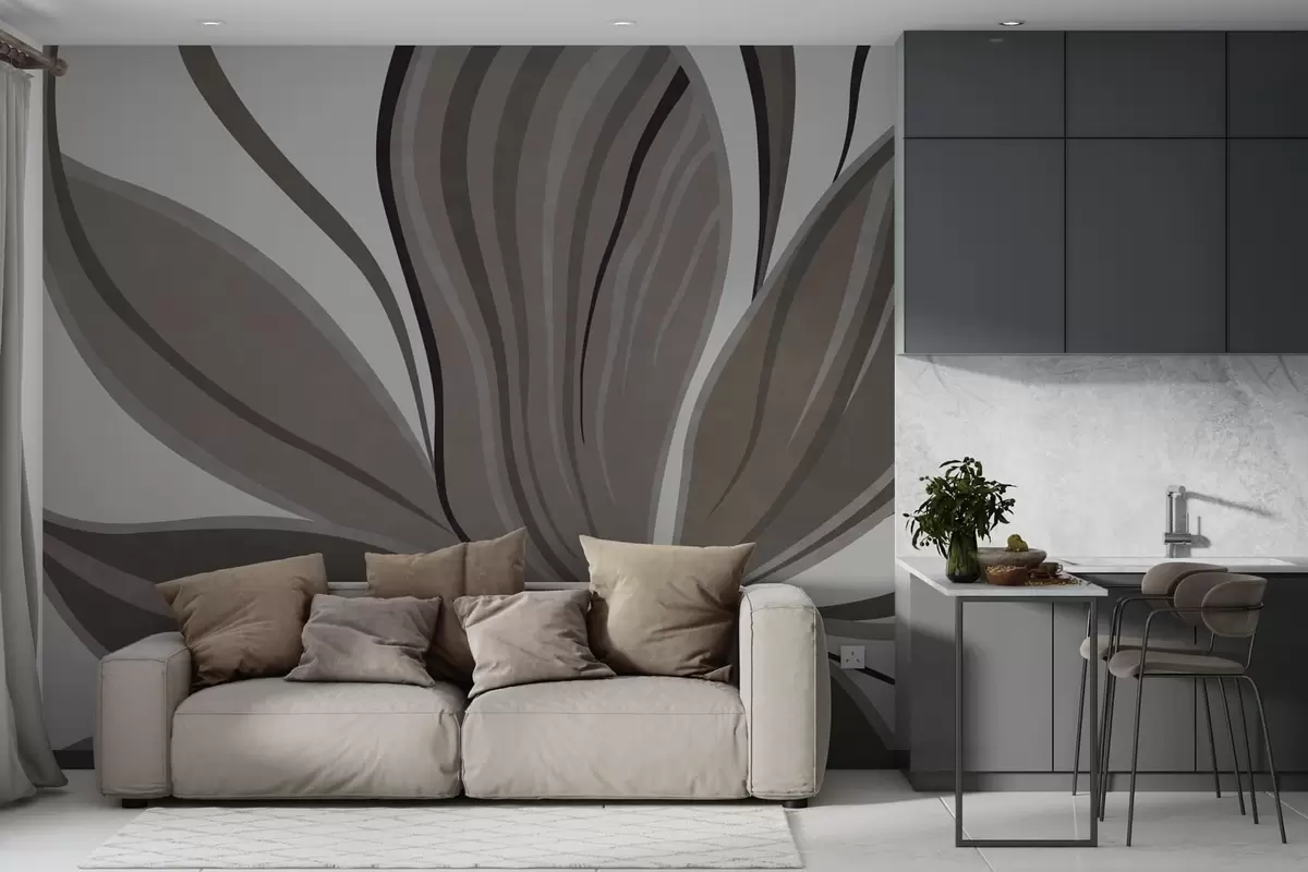 Murais de parede Flor abstrata com linhas suaves em tons de cinza e bege Nr. w05147v1