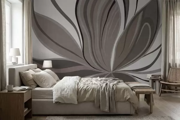 Murais de parede Flor abstrata com linhas suaves em tons de cinza e bege Nr. w05147v1