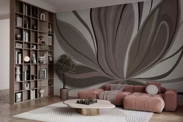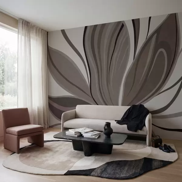 Murais de parede Flor abstrata com linhas suaves em tons de cinza e bege Nr. w05147v1