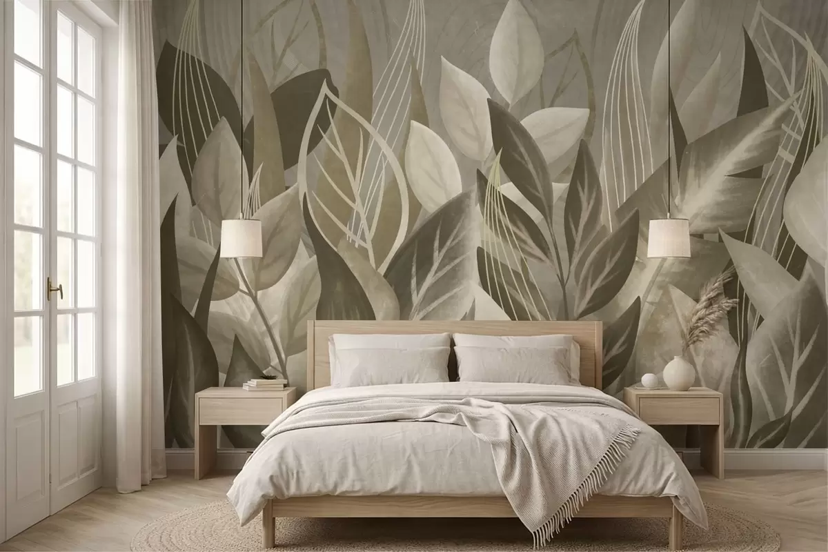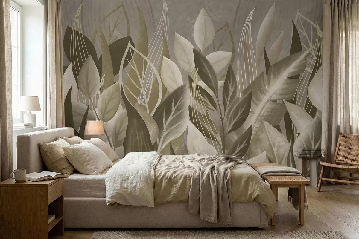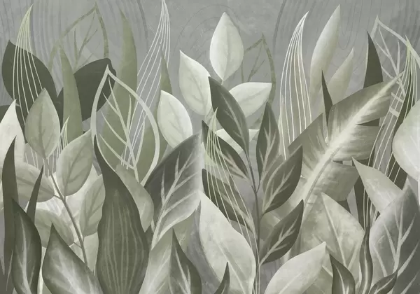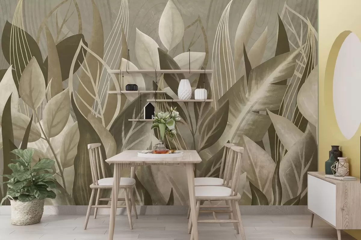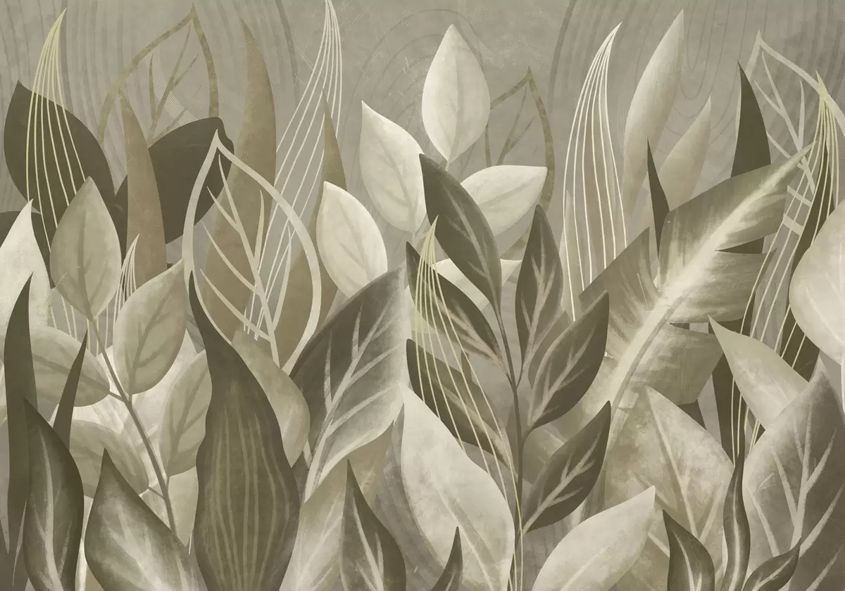 Murais de parede Folhas abstratas em tons de bege e verde Nr. w05148