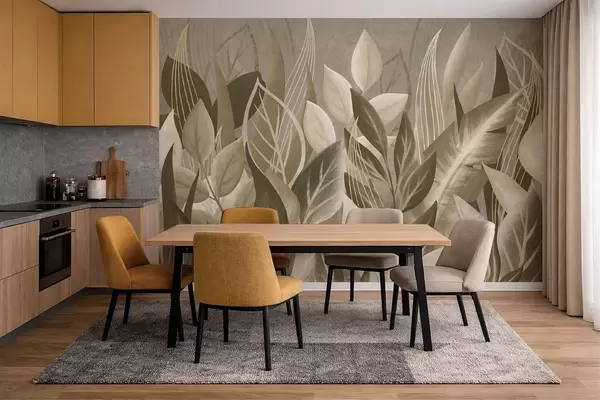 Murais de parede Folhas abstratas em tons de bege e verde Nr. w05148