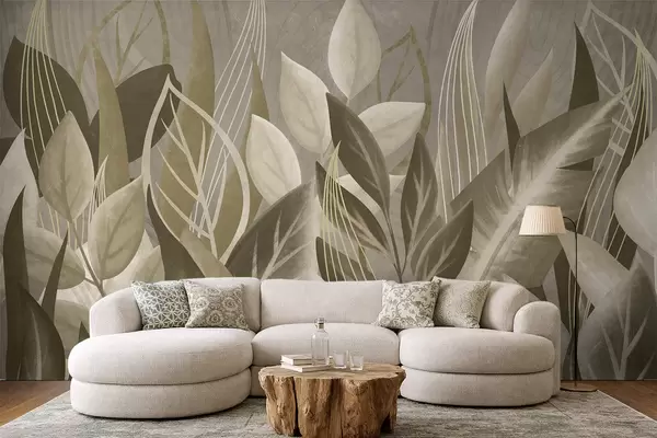 Murais de parede Folhas abstratas em tons de bege e verde Nr. w05148