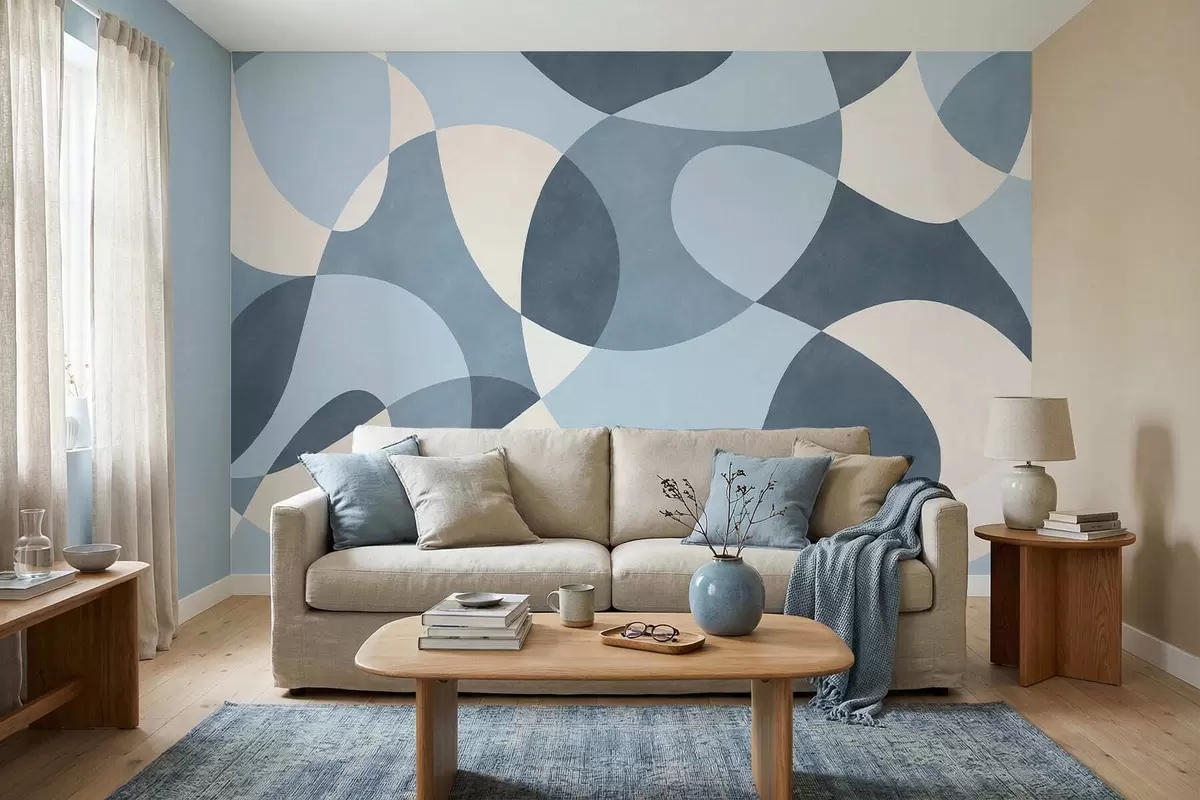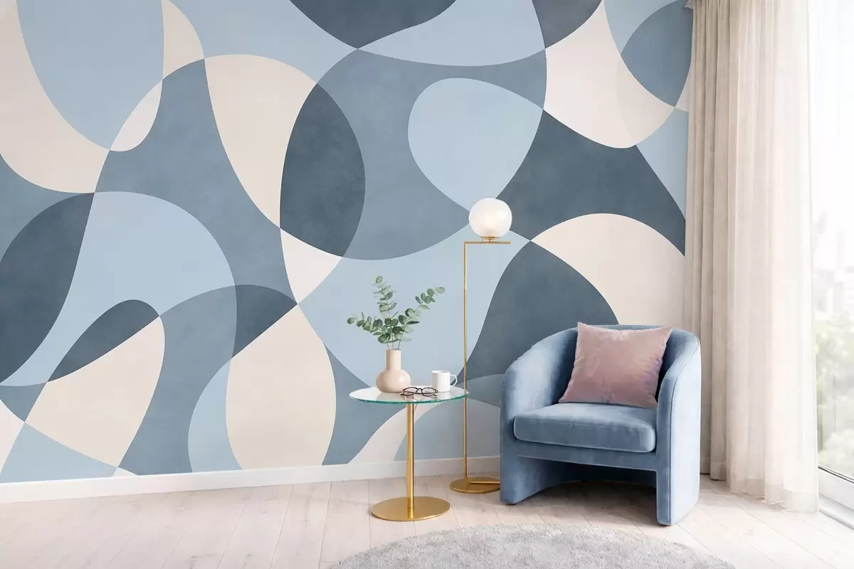 Murais de parede Padrão abstrato com formas arredondadas em tons de azul Nr. w05149v2