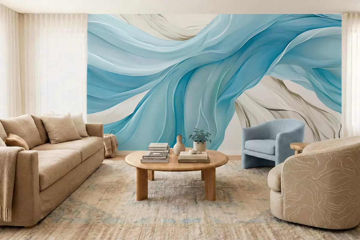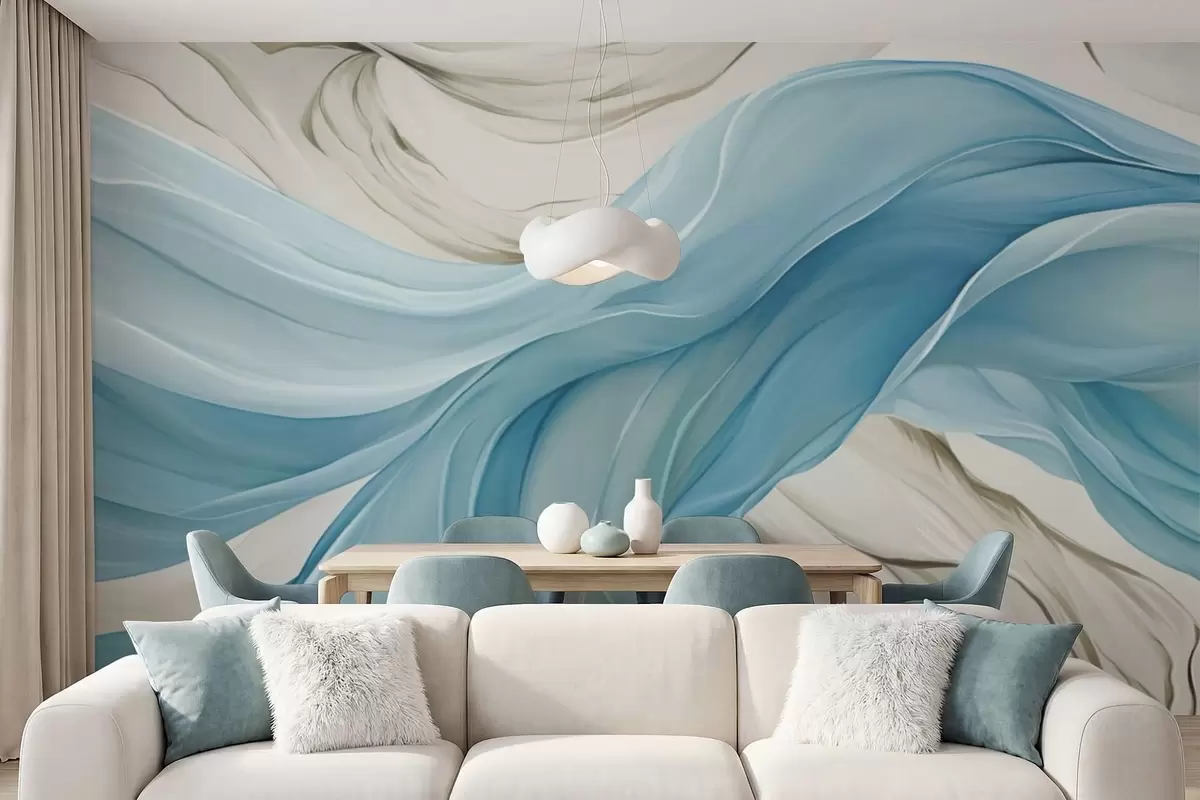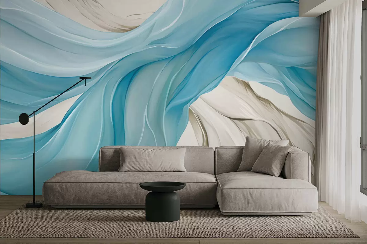 Murais de parede Ondas de tecido azul esvoaçante Nr. w05152v1