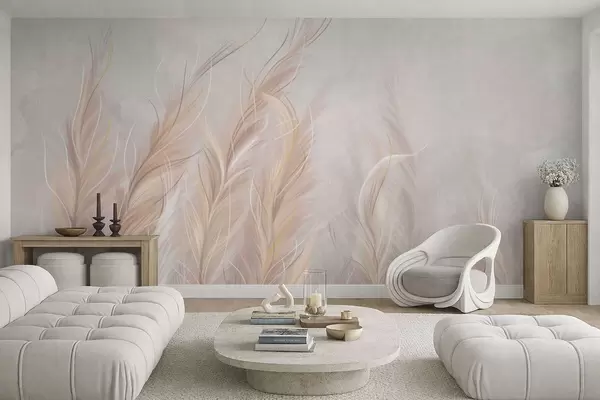 Murais de parede Penas abstratas suaves em tons neutros claros Nr. w05153