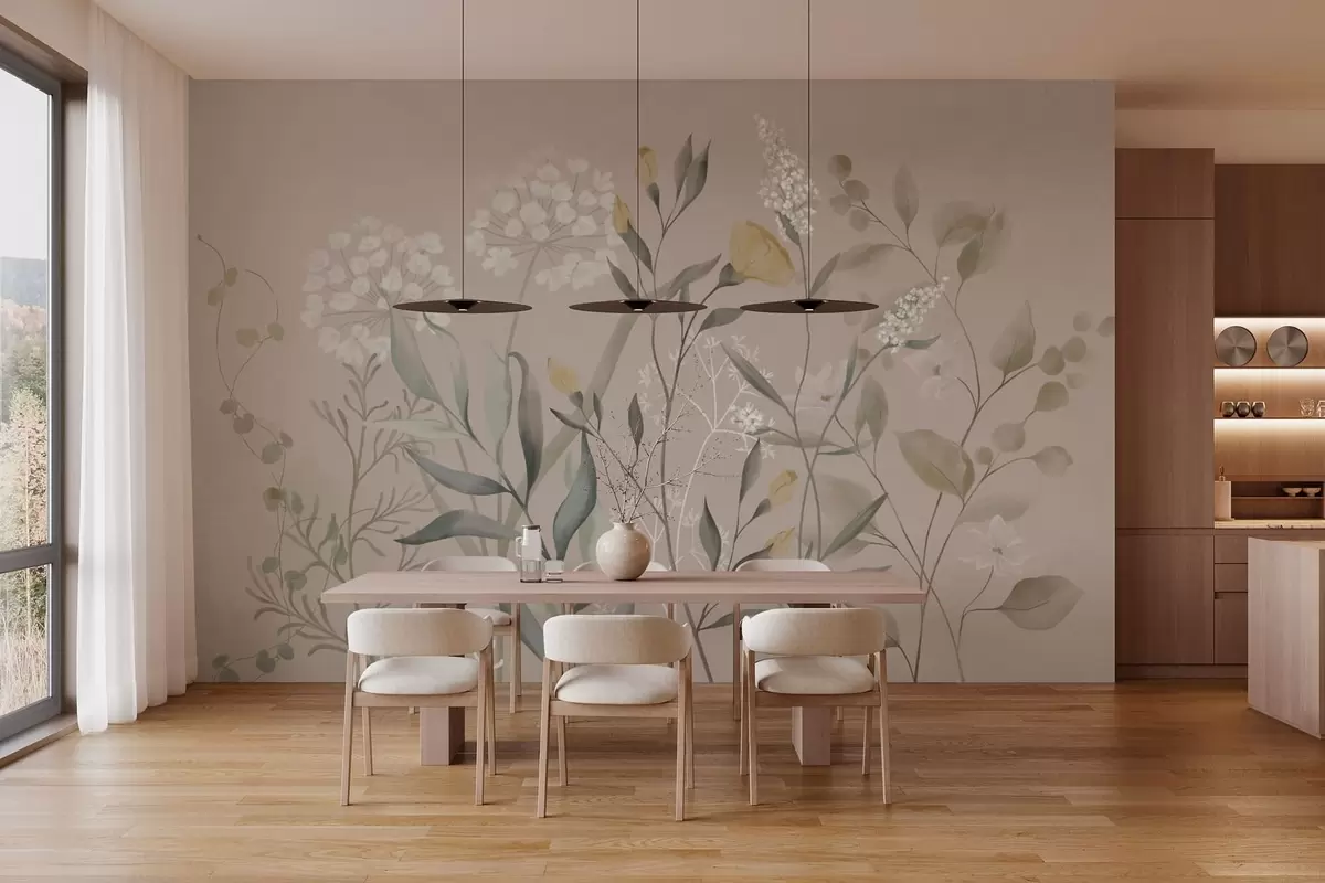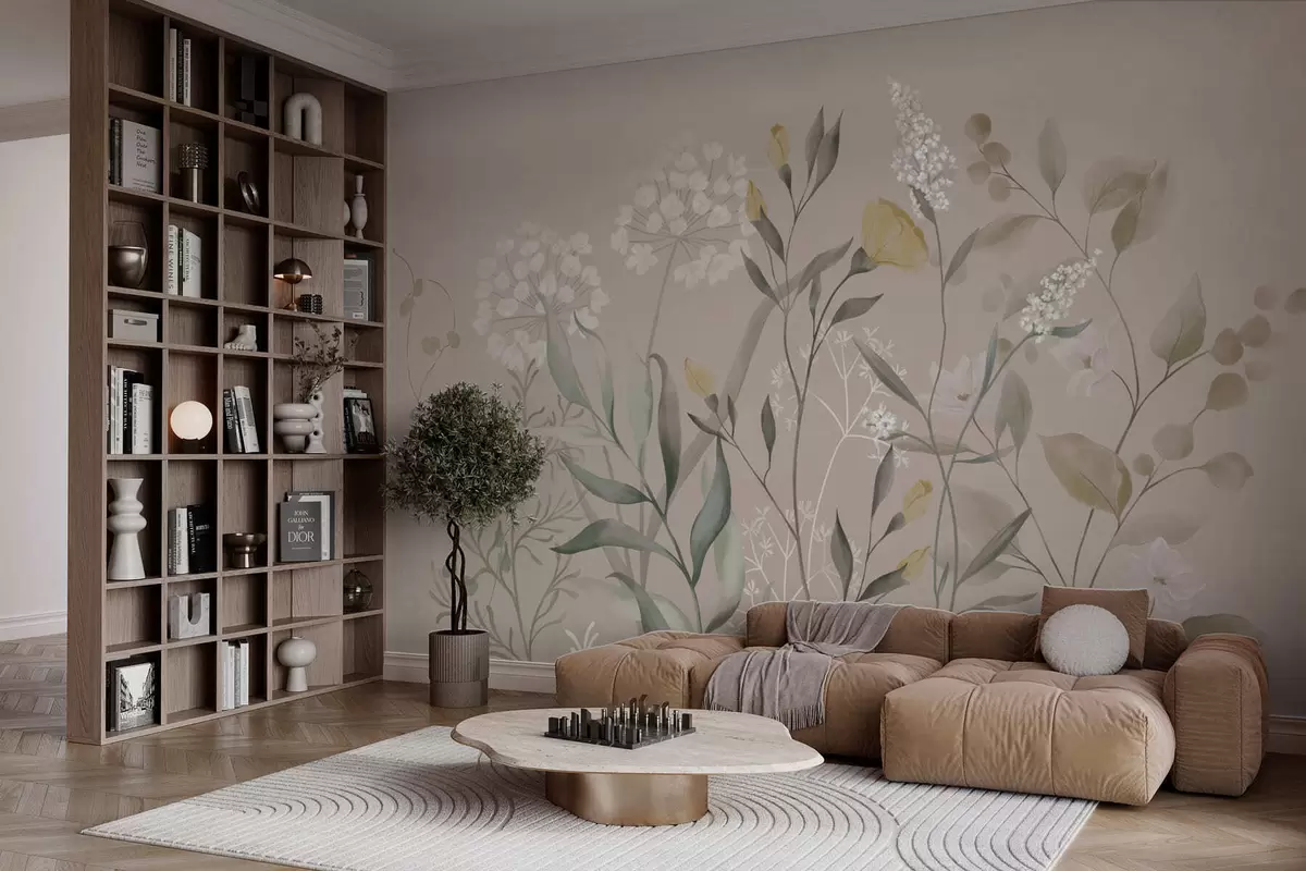 Murais de parede Composição botânica em tons quentes de bege Nr. w05154v2