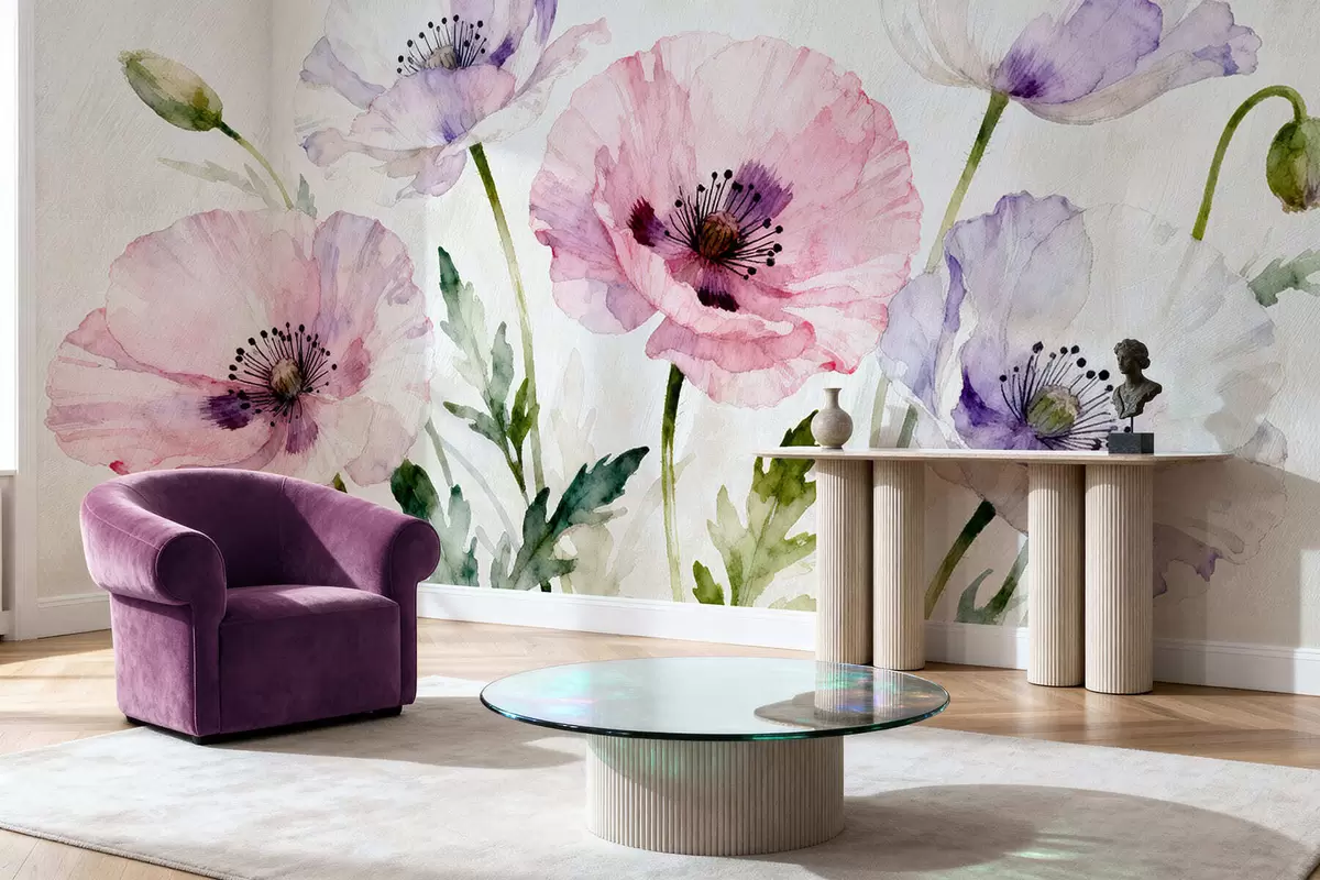 Murais de parede Papoulas em aquarela Nr. w05174