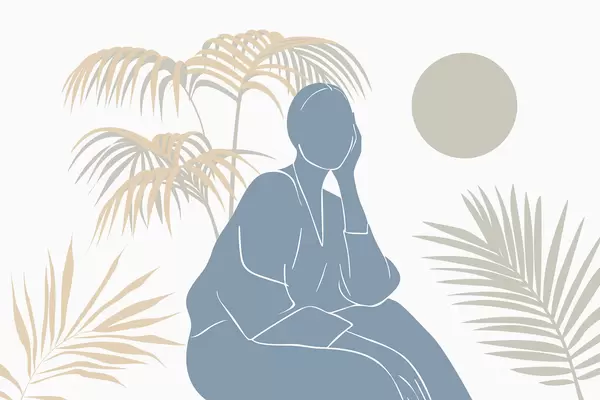 Murais de parede Silhueta de uma mulher e folhas de palmeira Nr. w05190