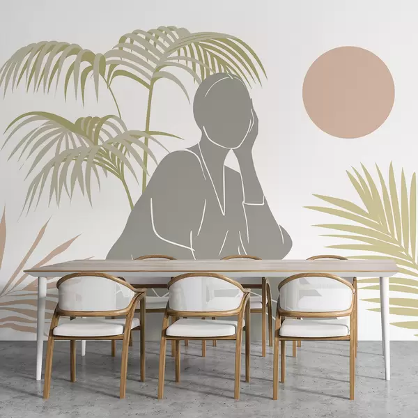 Murais de parede Silhueta de uma mulher e folhas de palmeira Nr. w05190