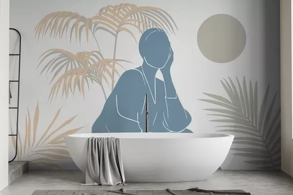 Murais de parede Silhueta de uma mulher e folhas de palmeira Nr. w05190v1