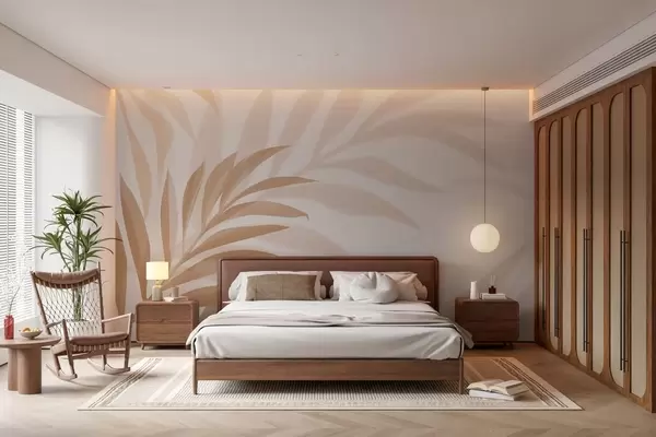 Murais de parede grandes folhas de palmeira curvas em tons de bege e marrom Nr. w05211