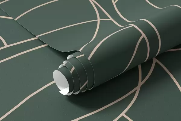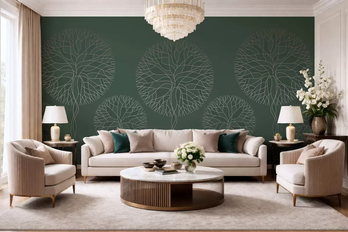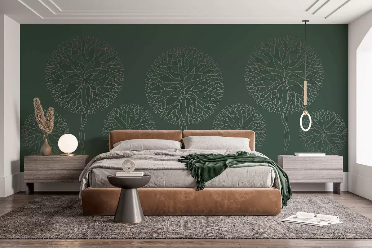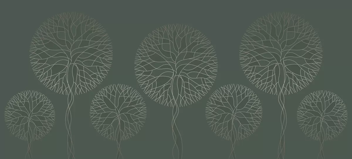 murais de parede Árvores lineares fantásticas com copas exuberantes em elegantes tons de verde escuro w05213v2
