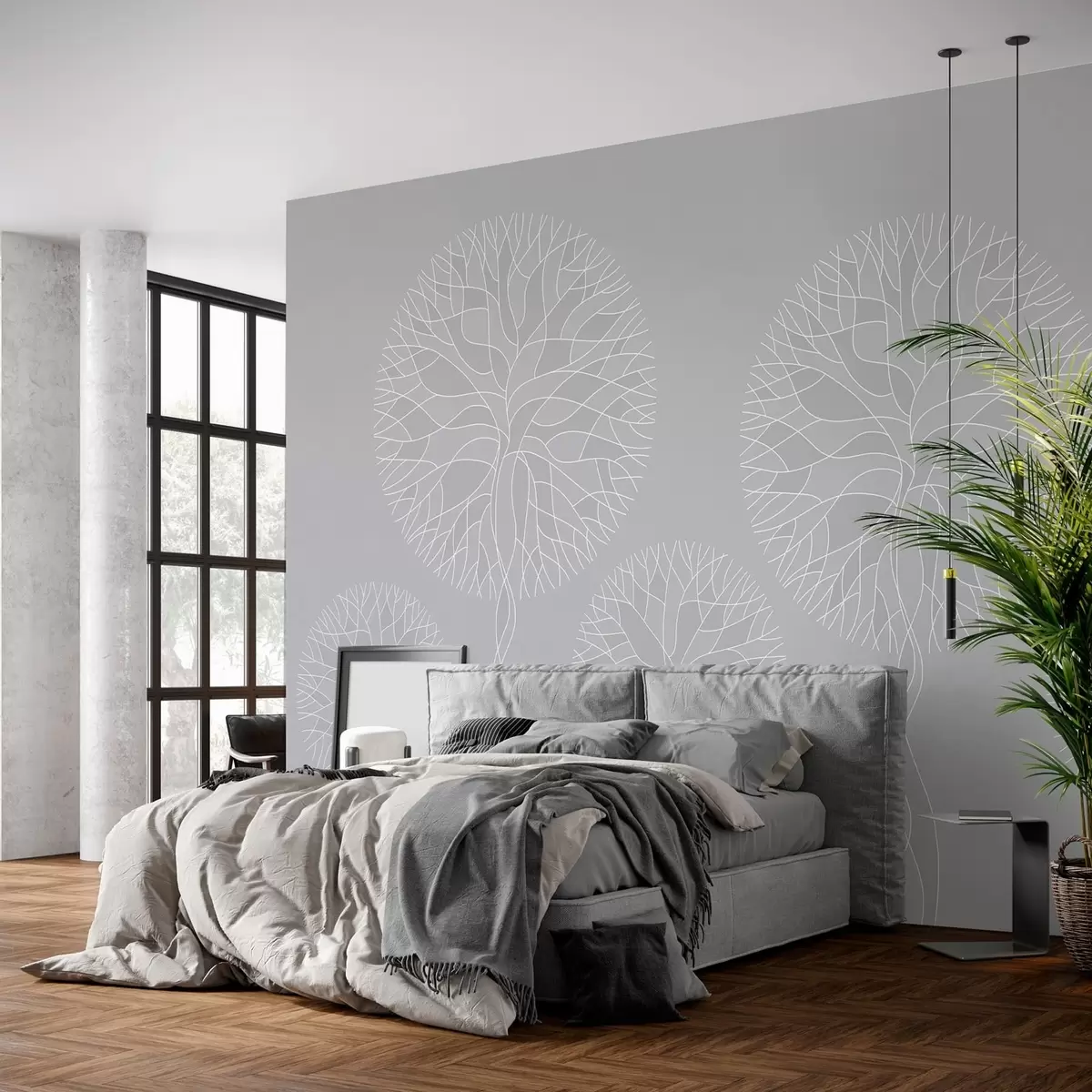 Murais de parede Árvores lineares fantásticas com copas exuberantes em tons de cinza claro Nr. w05213v4