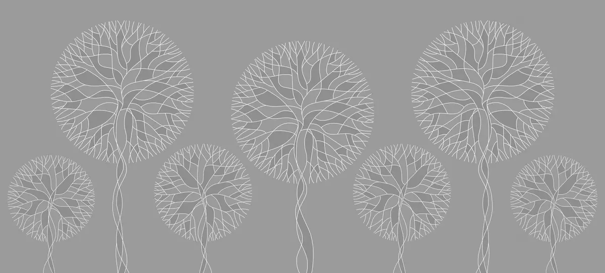 Murais de parede Árvores lineares fantásticas com copas exuberantes em tons de cinza médio Nr. w05213v5