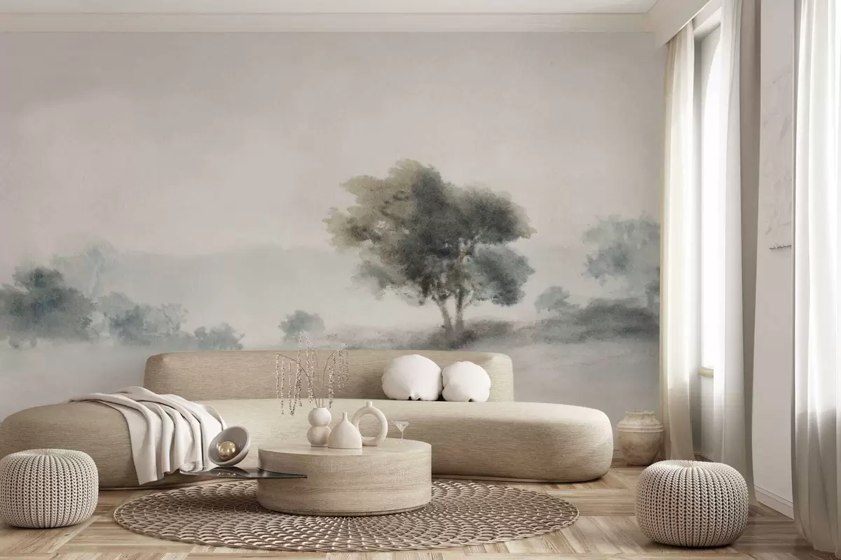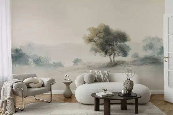 Murais de parede Paisagem tranquila com uma árvore e formas suaves e desfocadas Nr. w05223v1