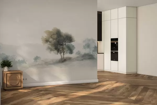 Murais de parede Paisagem tranquila com uma árvore e formas suaves e desfocadas Nr. w05223v1