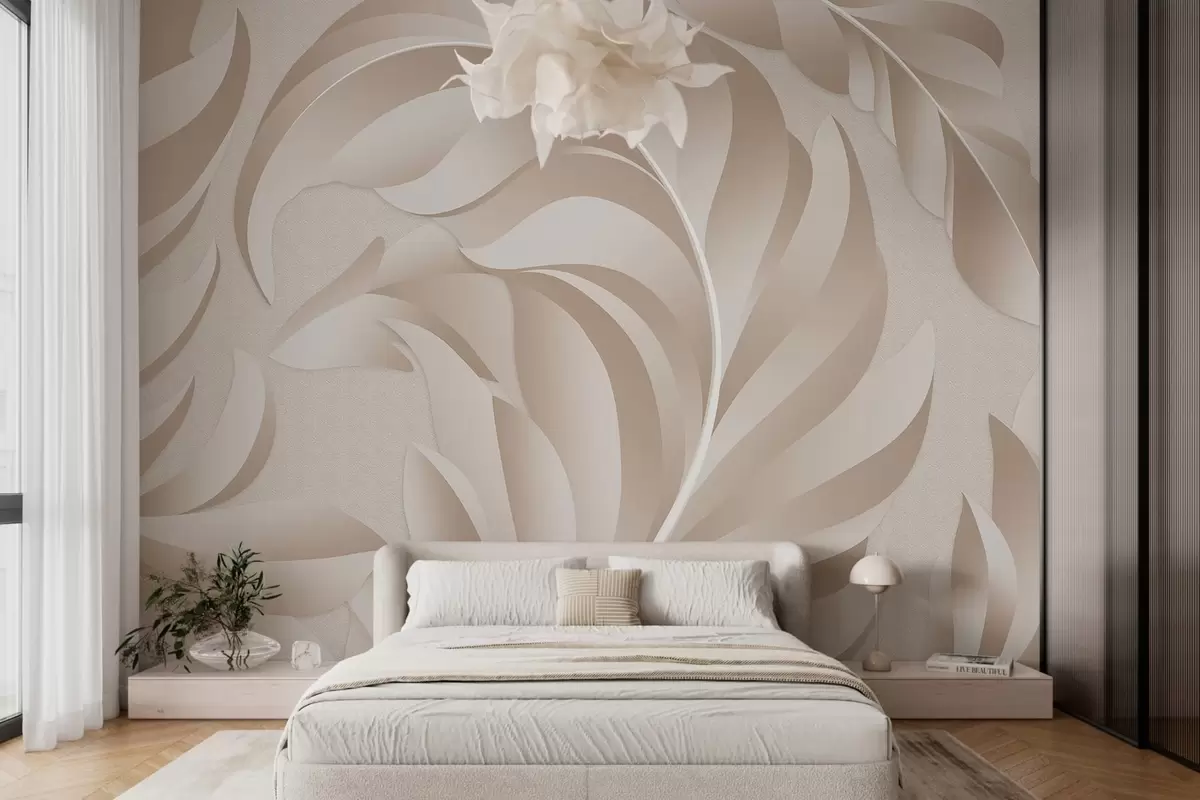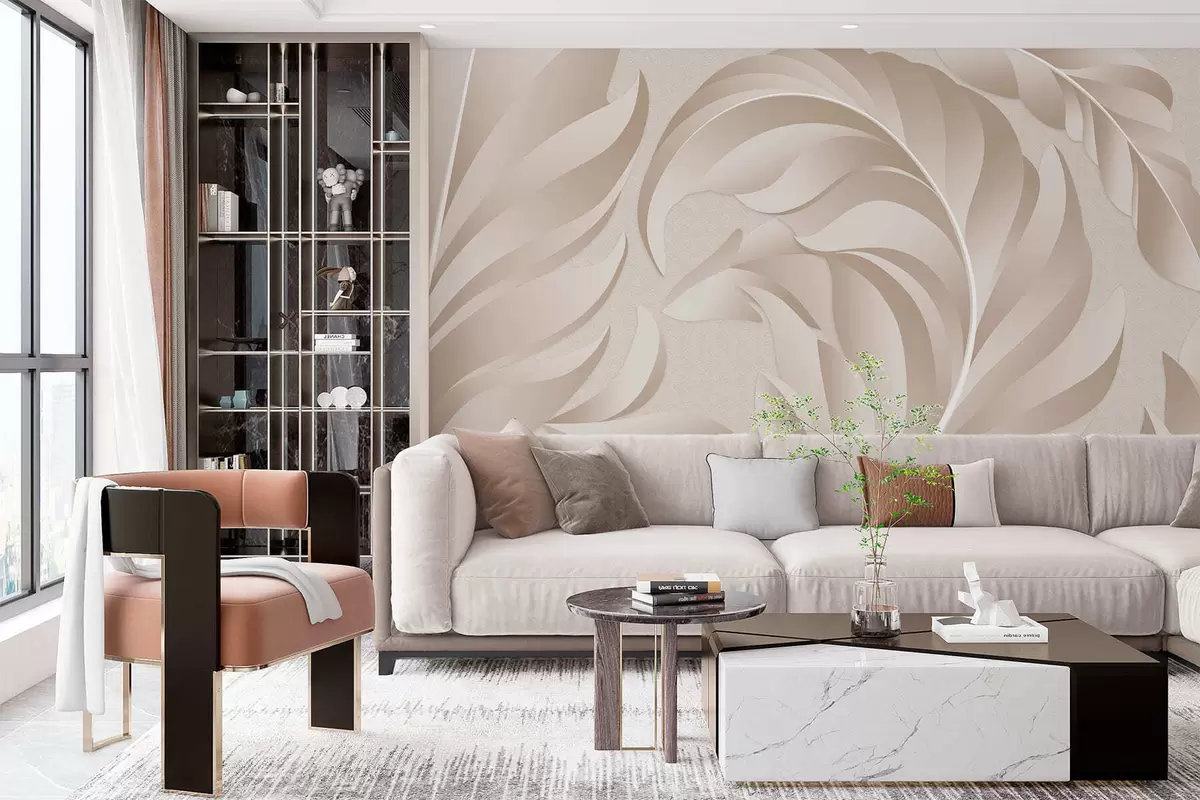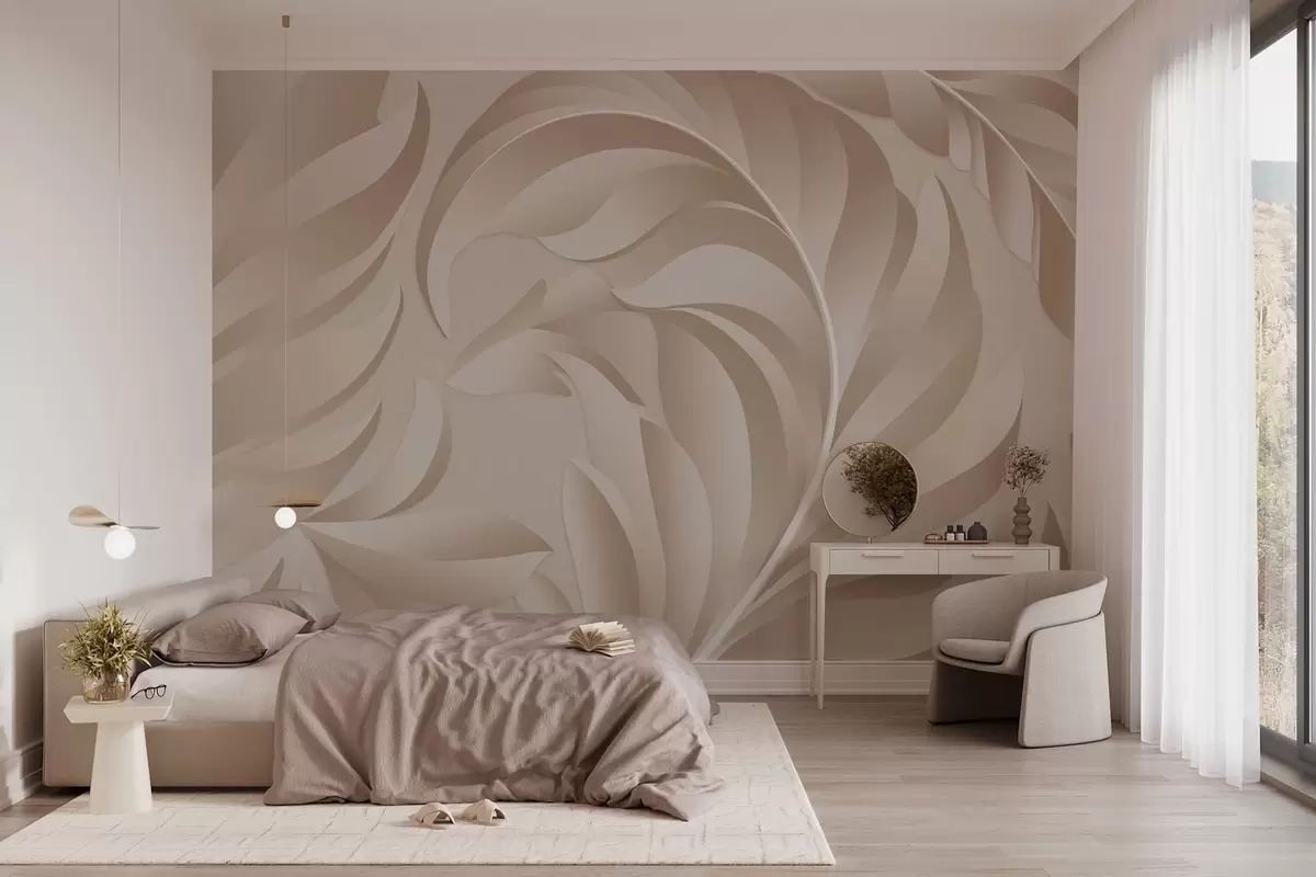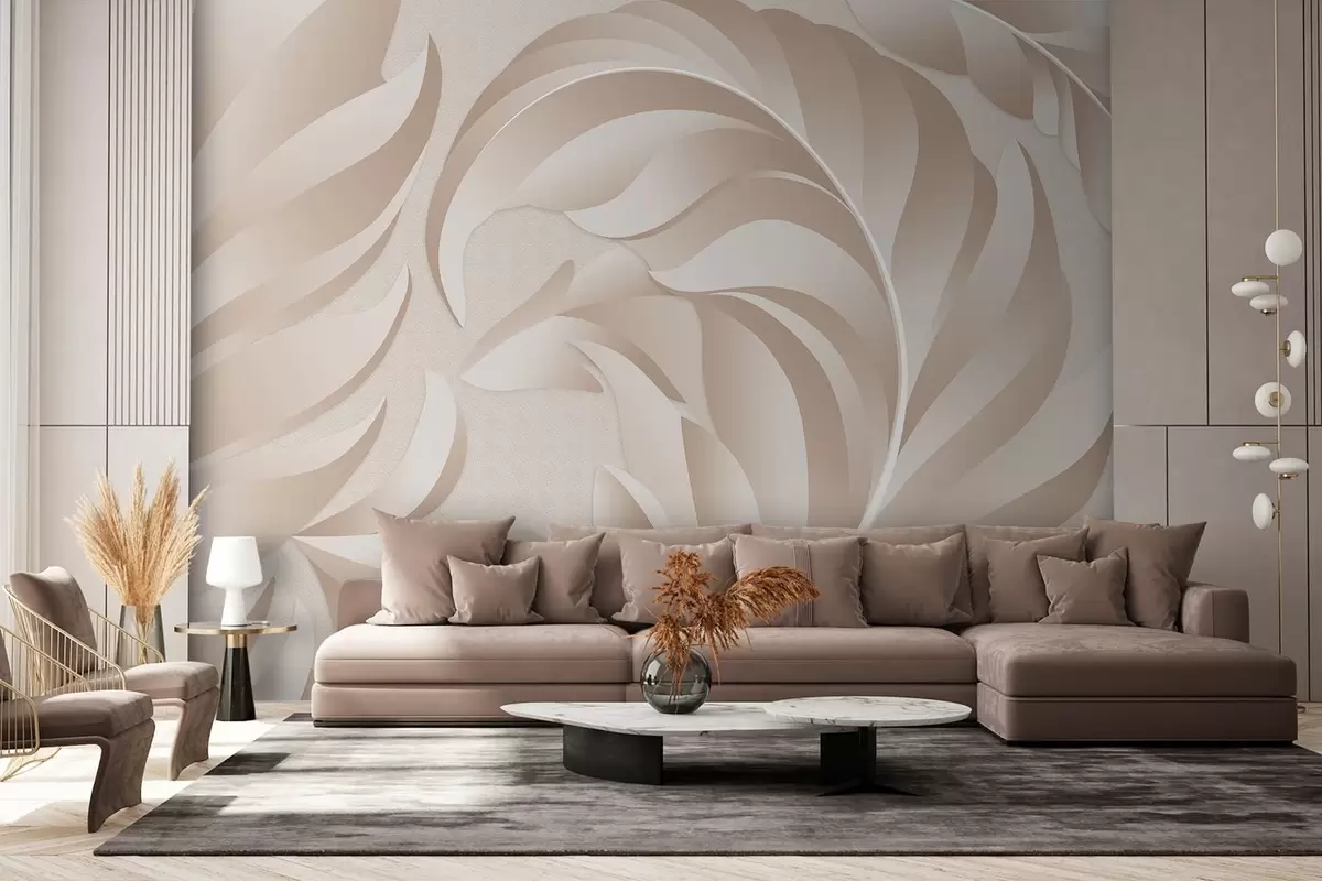 Murais de parede penas grandes e texturizadas em tons de bege e pó Nr. w05231