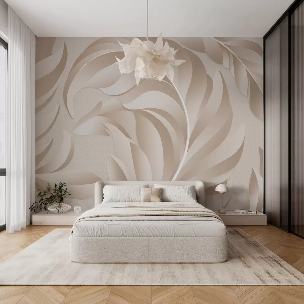 Murais de parede penas grandes e texturizadas em tons de bege e pó Nr. w05231