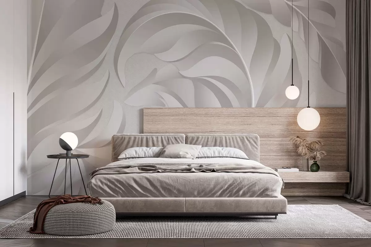 Murais de parede penas grandes e texturizadas em tons perolados Nr. w05231v2